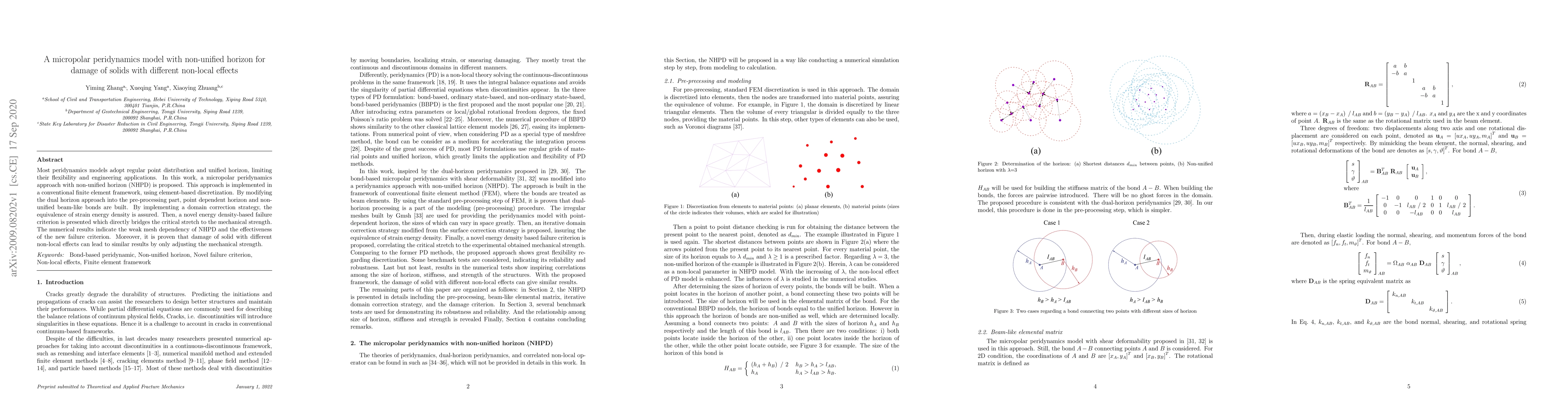 This paper proposes a micropolar peridynamics model with a non-unified horizon (NHPD) to enhance the flexibility and applicability of peridynamics models. The model demonstrates weak mesh dependency and effective damage prediction through a new energy density-based failure criterion.