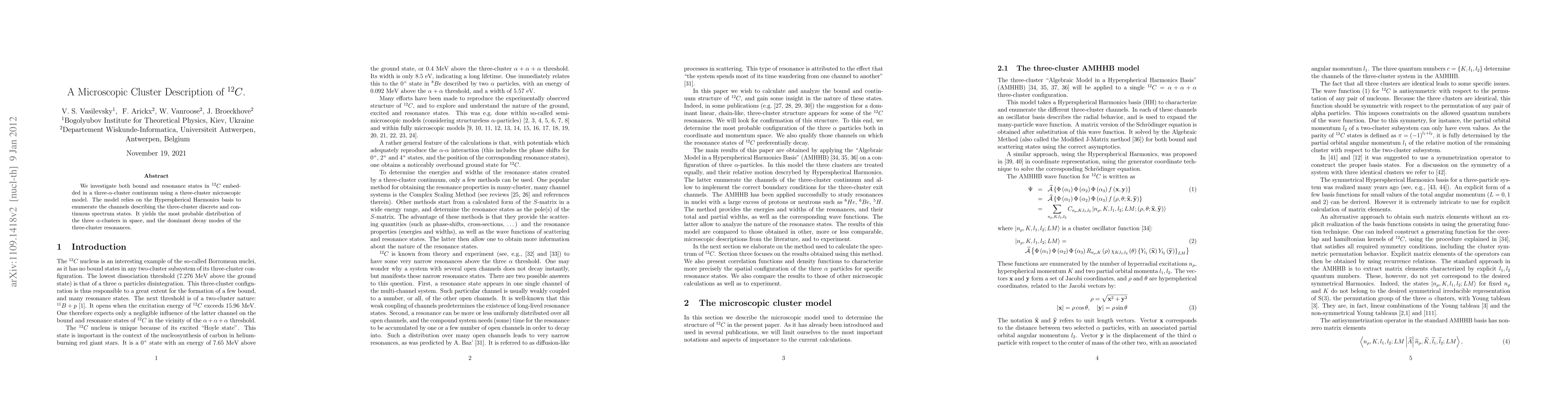 Researchers used two microscopic models to study 12C's bound and resonance states, finding good agreement with existing calculations and gaining insight into its three-alpha-cluster structure.