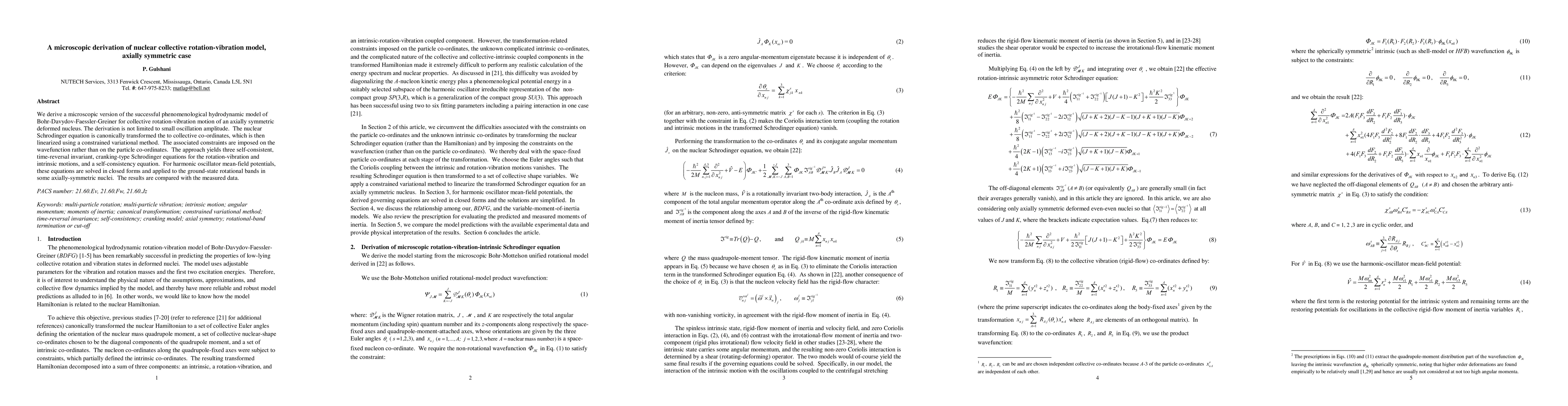 Researchers develop a microscopic model for collective rotation-vibration in nuclei, solving time-reversal invariant equations that match experimental data for specific axially symmetric nuclei.