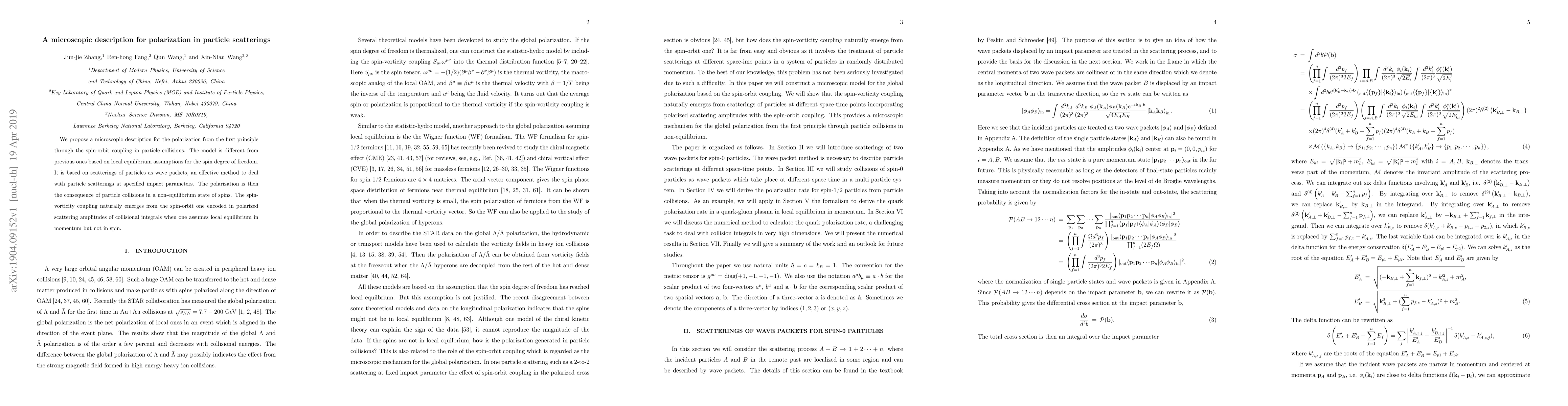We propose a microscopic description for the polarization from the first principle through the spin-orbit coupling in particle collisions. The model is different from previous ones based on local equilibrium assumptions for the spin degree of freedom. It is based on scatterings of particles as wave packets, an effective method to deal with particle scatterings at specified impact parameters. The polarization is then the consequence of particle collisions in a non-equilibrium state of spins. The spin-vorticity coupling naturally emerges from the spin-orbit one encoded in polarized scattering amplitudes of collisional integrals when one assumes local equilibrium in momentum but not in spin.
