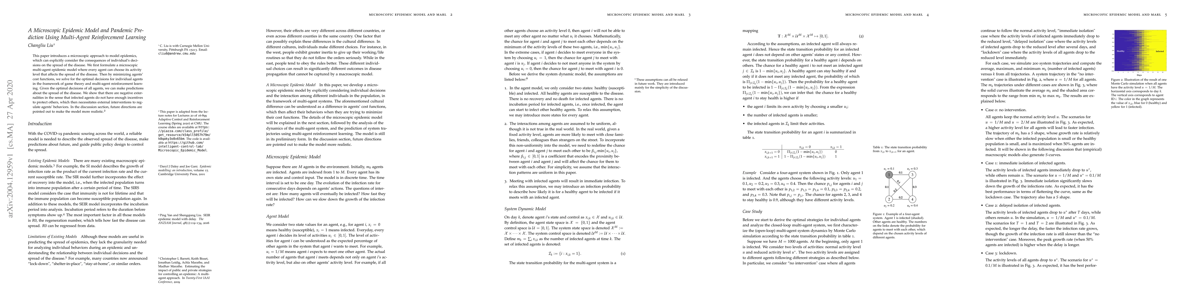 This paper introduces a microscopic approach to model epidemics, which can explicitly consider the consequences of individual's decisions on the spread of the disease. We first formulate a microscopic multi-agent epidemic model where every agent can choose its activity level that affects the spread of the disease. Then by minimizing agents' cost functions, we solve for the optimal decisions for individual agents in the framework of game theory and multi-agent reinforcement learning. Given the optimal decisions of all agents, we can make predictions about the spread of the disease. We show that there are negative externalities in the sense that infected agents do not have enough incentives to protect others, which then necessitates external interventions to regulate agents' behaviors. In the discussion section, future directions are pointed out to make the model more realistic.