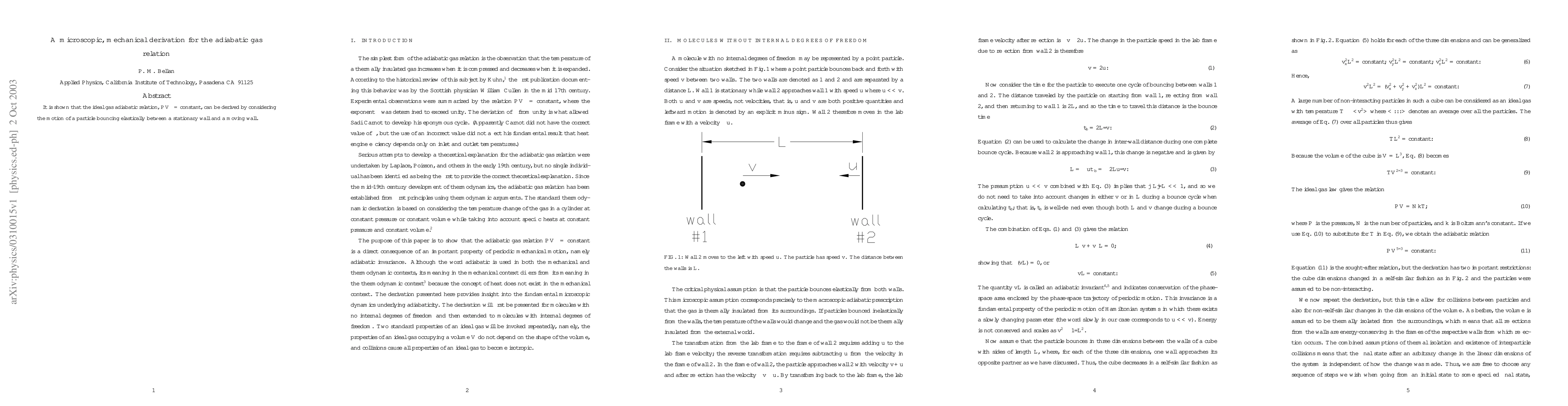 A research paper derives the ideal gas adiabatic relation using a mechanical model of a particle bouncing between two walls, showing that it is a fundamental principle governing the behavior of gases.