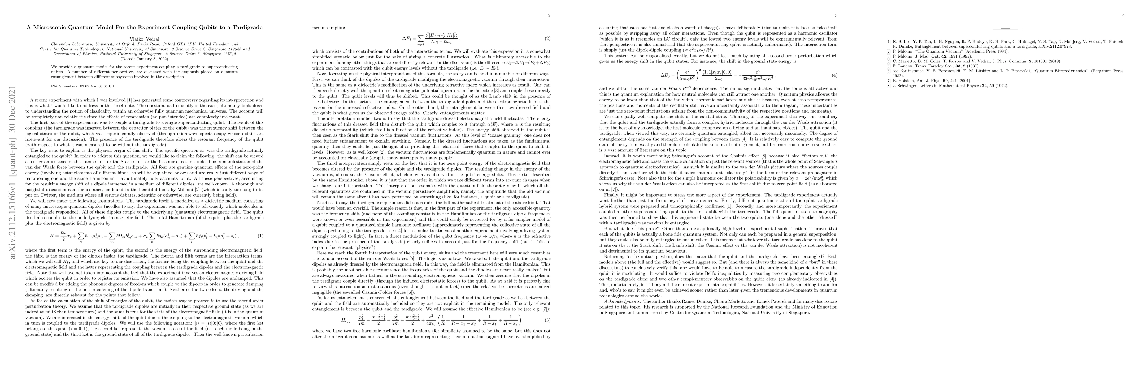 Researchers created a quantum model for coupling tardigrades to superconducting qubits, focusing on entanglement between different subsystems. This study explores the microscopic mechanisms underlying a unique experiment involving tiny, extremophile creatures.