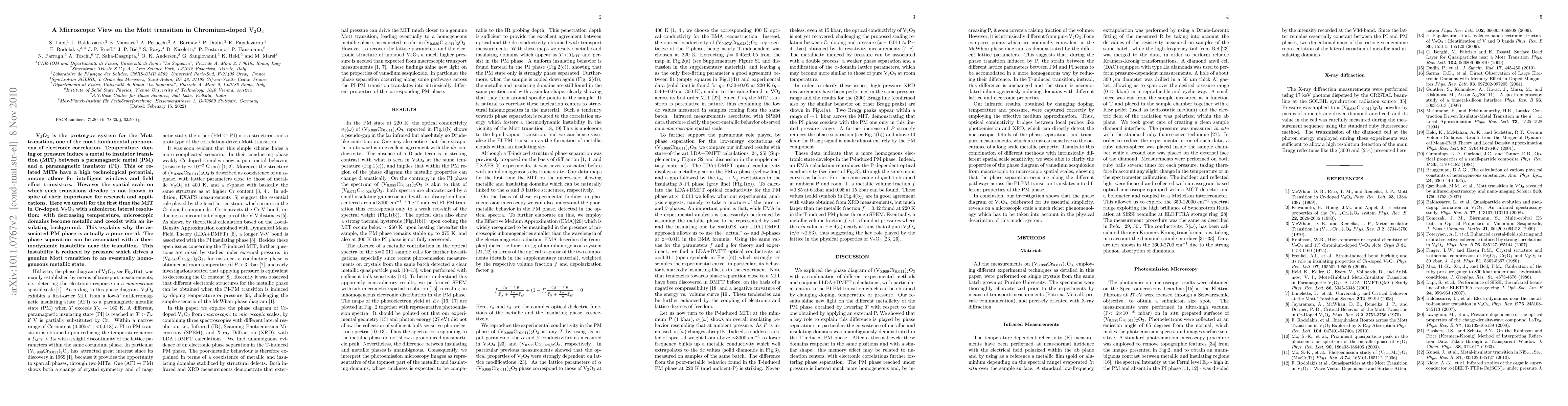 Researchers have discovered a microscopic view of the Mott transition in Chromium-doped V2O3, revealing that metal-insulator transitions occur through phase separation into metallic domains and insulating backgrounds.