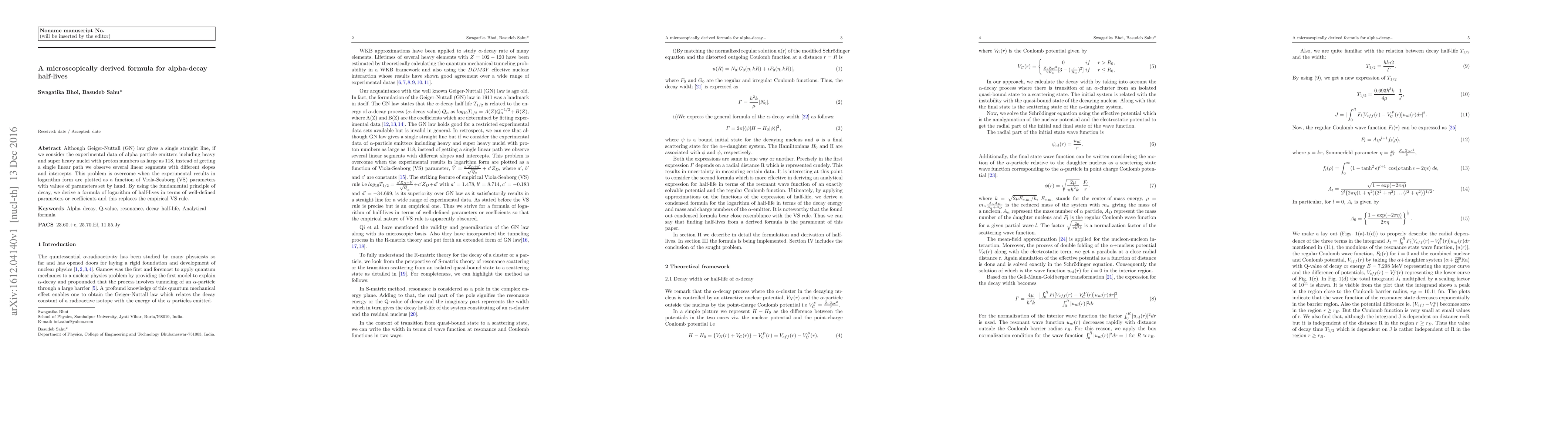 This paper proposes a new microscopically derived formula for alpha-decay half-lives, moving beyond the Geiger-Nuttall law by accommodating multiple linear segments in the decay data. It replaces the empirical Viola-Seaborg rule with a theoretically grounded formula based on fundamental decay principles.