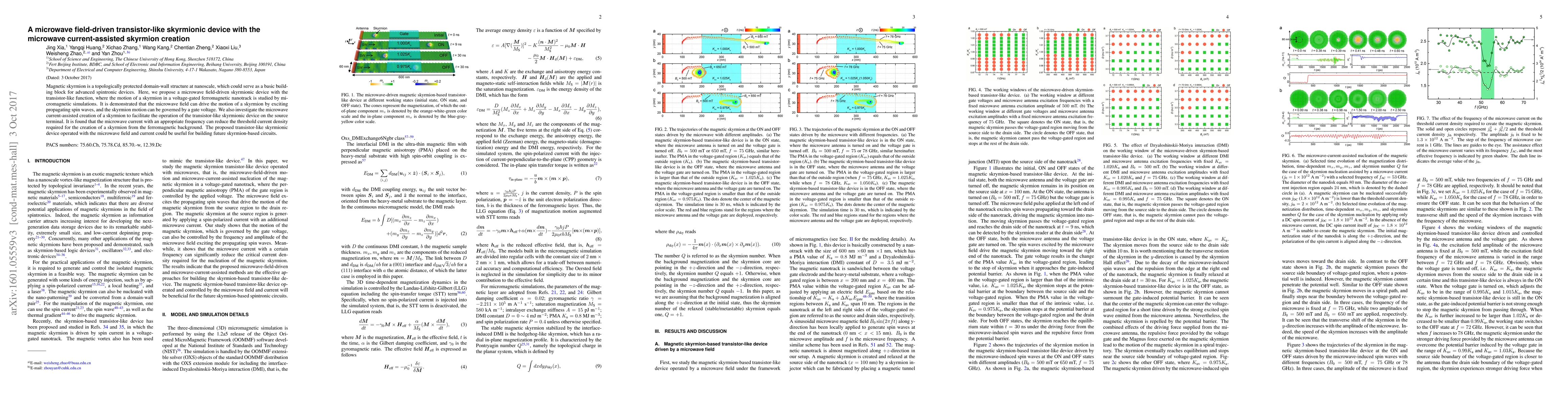 This paper proposes a microwave field-driven transistor-like skyrmionic device where microwave fields can drive skyrmion motion via spin waves, and a gate voltage can control this motion. Additionally, microwave current assists in creating skyrmions, reducing the required threshold current density, potentially enabling advanced spintronic applications.