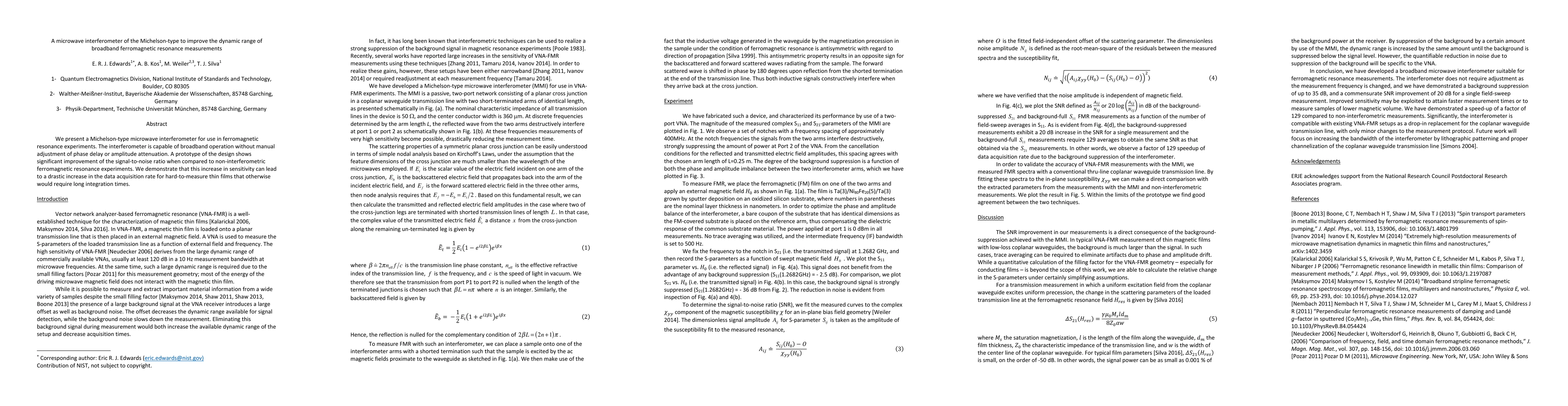 This paper introduces a Michelson-type microwave interferometer enhancing the dynamic range of broadband ferromagnetic resonance measurements, showing improved signal-to-noise ratio and significantly faster data acquisition rates for thin film samples.