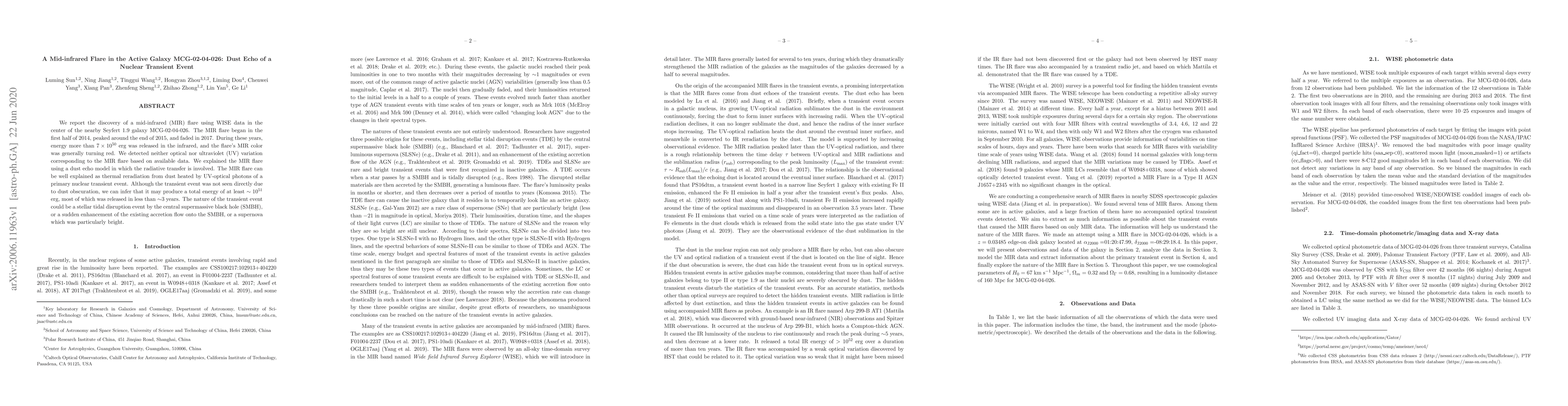 A mid-infrared flare was detected in the galaxy MCG-02-04-026, lasting from 2014 to 2017, with energy release exceeding $10^{51}$ erg, likely caused by a nuclear transient event.