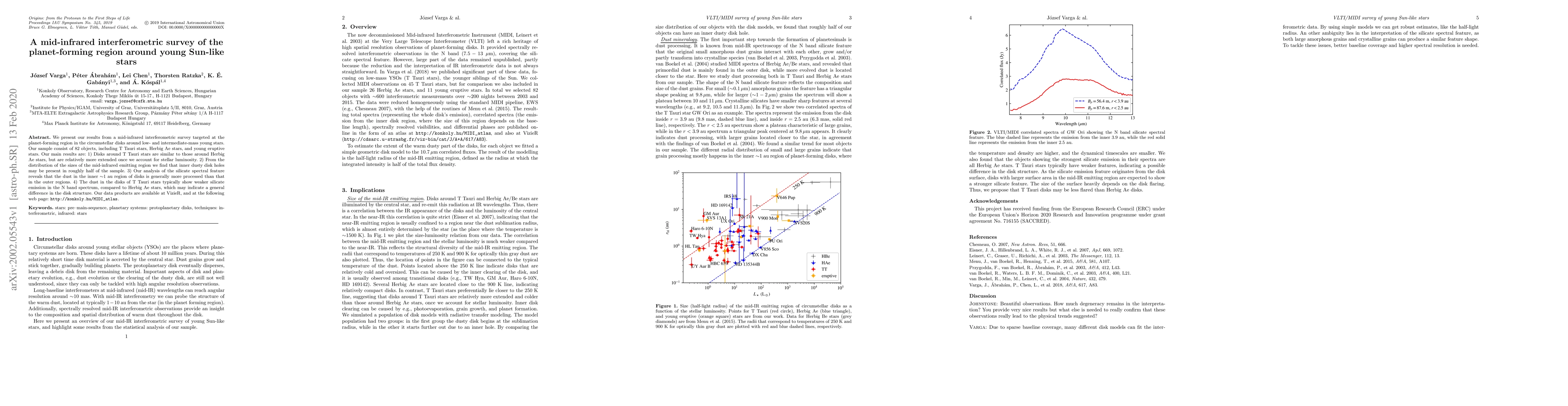 A mid-infrared interferometric survey of 82 young Sun-like stars reveals similar disk structures for T Tauri and Herbig Ae stars, but with varying levels of processing and silicate emission patterns.