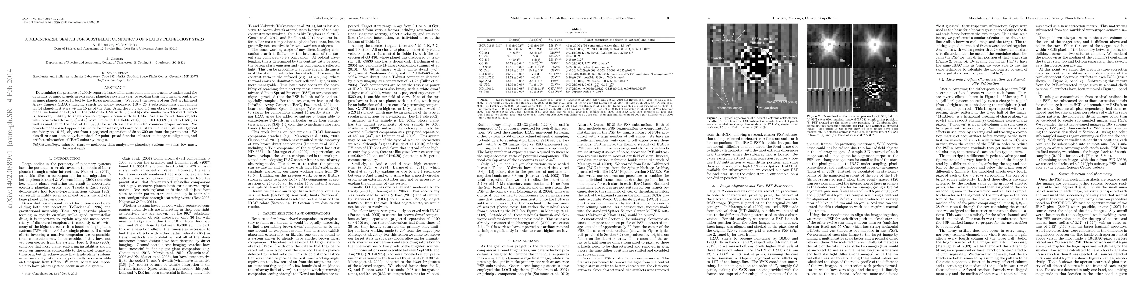 Determining the presence of widely separated substellar-mass companion is crucial to understand the dynamics of inner planets in extrasolar planetary systems (e.g. to explain their high mean eccentricity as inner planets are perturbed by the Kozai mechanism). We report the results of our $\textit{Spitzer}$/Infrared Array Camera (IRAC) imaging search for widely separated (10 to 25$^{\prime\prime}$) substellar-mass companions for 14 planet-host stars within 15 pc of the Sun. Using deep 3.6 and 4.5 $\mu$m observations in subarray mode, we found one object in the field of 47 UMa with [3.6]$-$[4.5] color similar to a T5 dwarf, which is, however, unlikely to share common proper motion with 47 UMa. We also found three objects with brown-dwarf-like [3.6]$-$[4.5] color limits in the fields of GJ 86, HD 160691, and GJ 581, as well as another in the field of HD 69830 for which we have excluded common proper motion. We provide model-based upper mass limits for unseen objects around all stars in our sample, with typical sensitivity to 10 M$_{J}$ objects from a projected separation of 50 to 300 au from the parent star. We also discuss our data analysis methods for point-spread-function subtraction, image co-alignment, and artifact subtraction of IRAC subarray images.