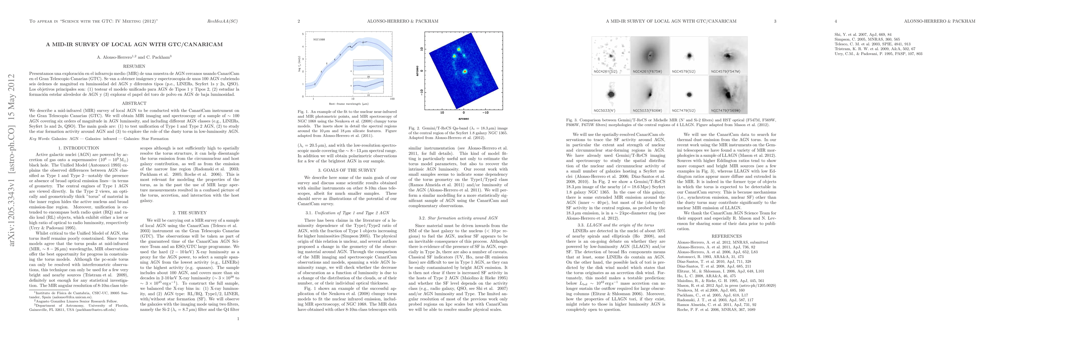 This paper outlines a mid-infrared survey of local active galactic nuclei (AGN) using the CanariCam instrument on the Gran Telescopio Canarias. The survey aims to test AGN unification models, study star formation around AGN, and investigate the dusty torus's role in low-luminosity AGN.