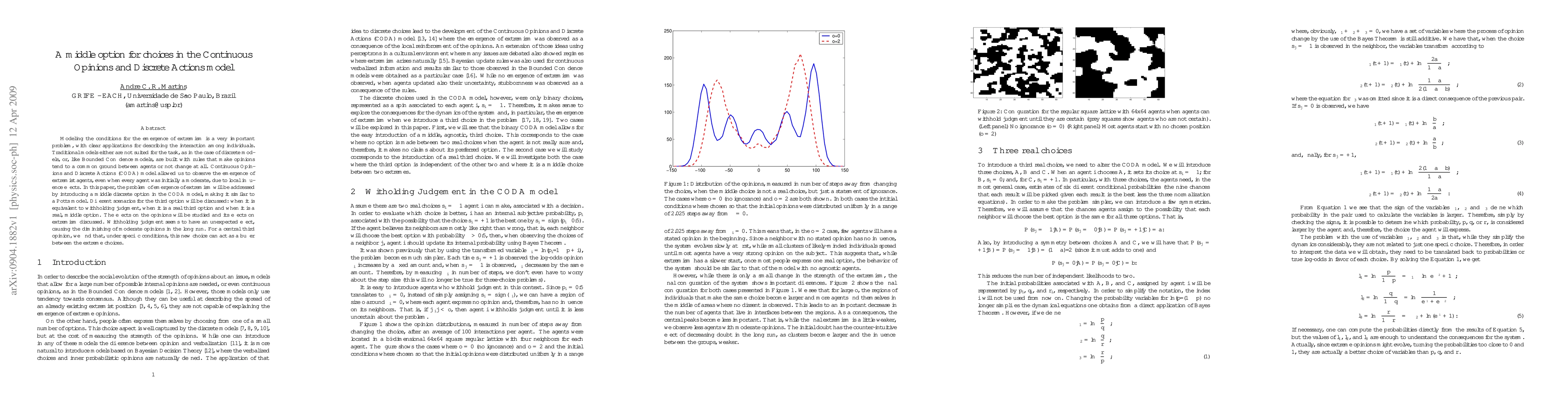 This paper introduces a middle discrete option in the Continuous Opinions and Discrete Actions (CODA) model to address the emergence of extremism. It explores different scenarios for the third option, finding that it can act as a buffer between extreme choices under specific conditions, while withholding judgment diminishes moderate opinions over time.