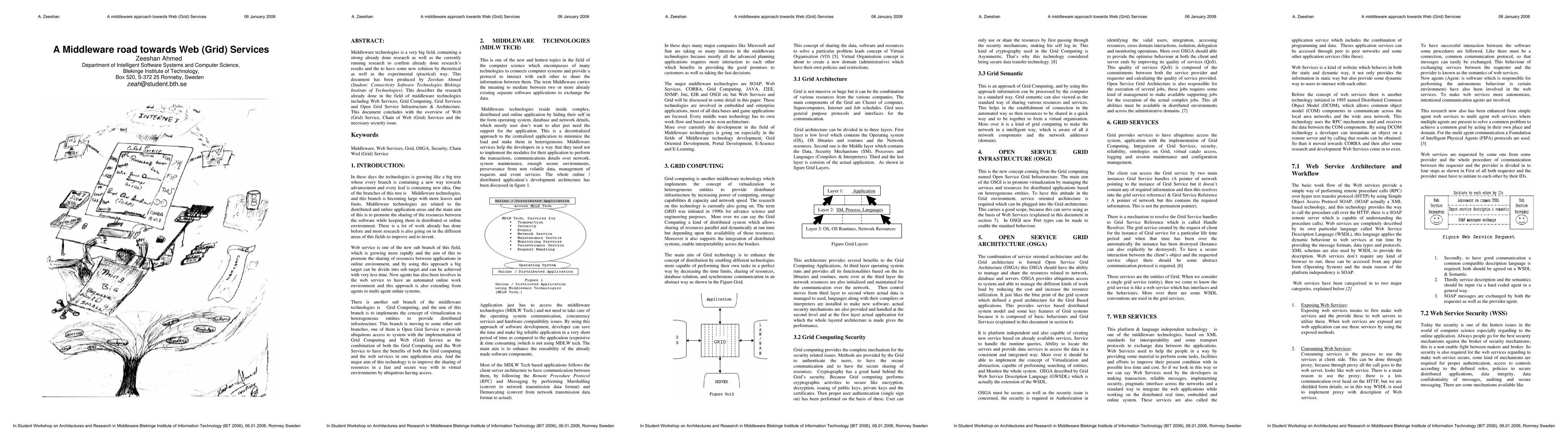 Middleware technologies is a very big field, containing a strong already done research as well as the currently running research to confirm already done research's results and the to have some new solution by theoretical as well as the experimental (practical) way. This document has been produced by Zeeshan Ahmed (Student: Connectivity Software Technologies Blekinge Institute of Technologies). This describes the research already done in the field of middleware technologies including Web Services, Grid Computing, Grid Services and Open Grid Service Infrastructure & Architecture. This document concludes with the overview of Web (Grid) Service, Chain of Web (Grid) Services and the necessary security issue.