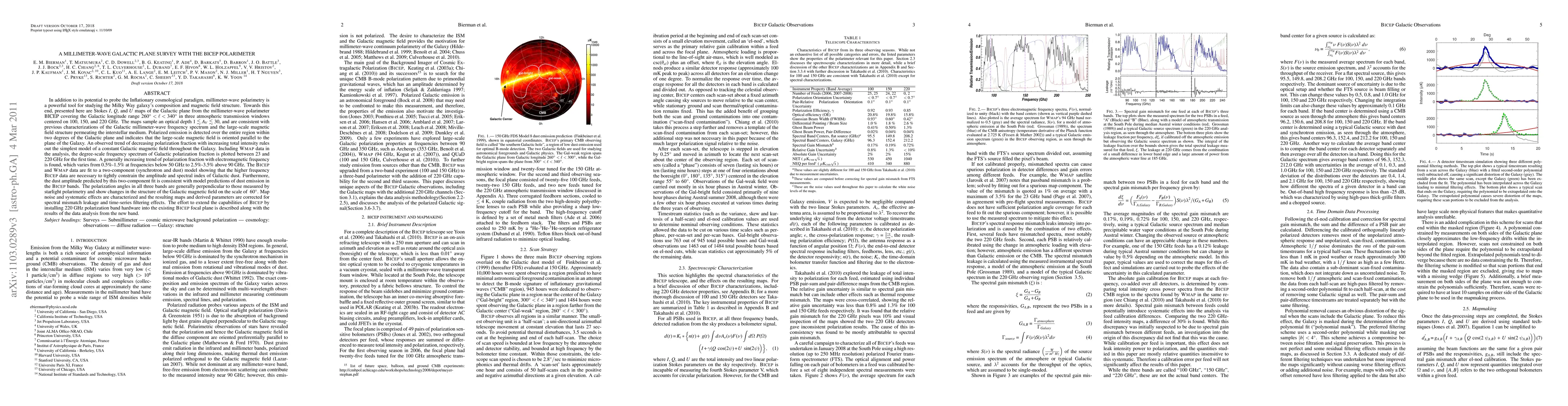 A millimeter-wave survey of the Milky Way's galactic plane reveals a strong magnetic field parallel to the galaxy's plane, with polarized emission detected over 2 degrees of the plane. The data also show a trend of increasing polarization fraction with electromagnetic frequency, constraining the amplitude and spectral index of Galactic dust.
