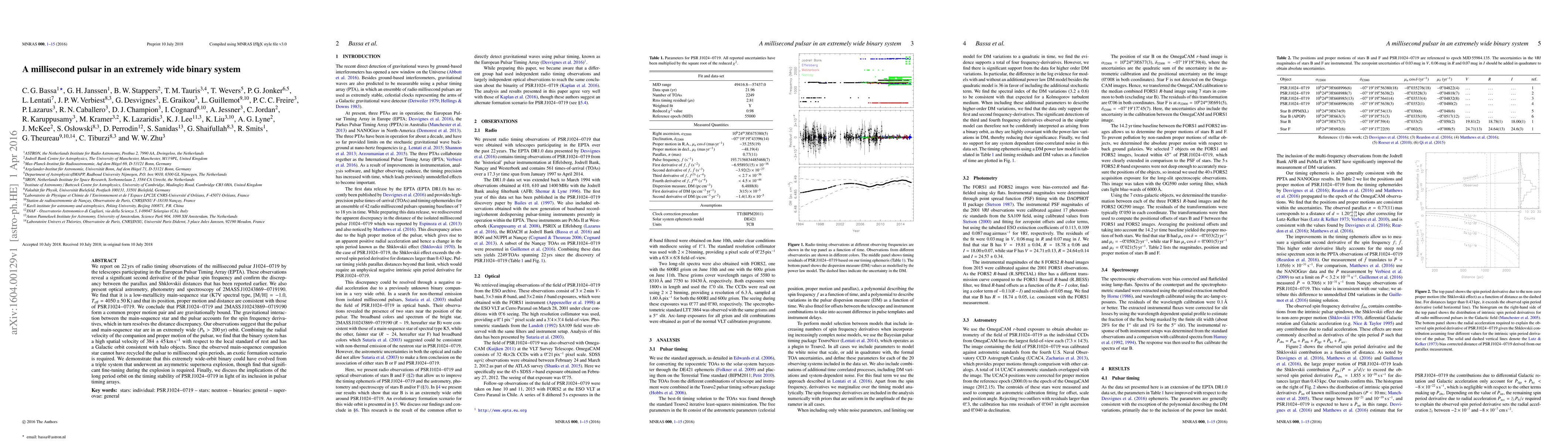 This paper reports 22 years of observations of the millisecond pulsar J1024$-$0719, revealing a wide binary system with a low-metallicity K7V star, suggesting an exotic formation via a triple system's asymmetric supernova. The system's high spatial velocity and wide orbit impact the pulsar's timing stability for arrays.