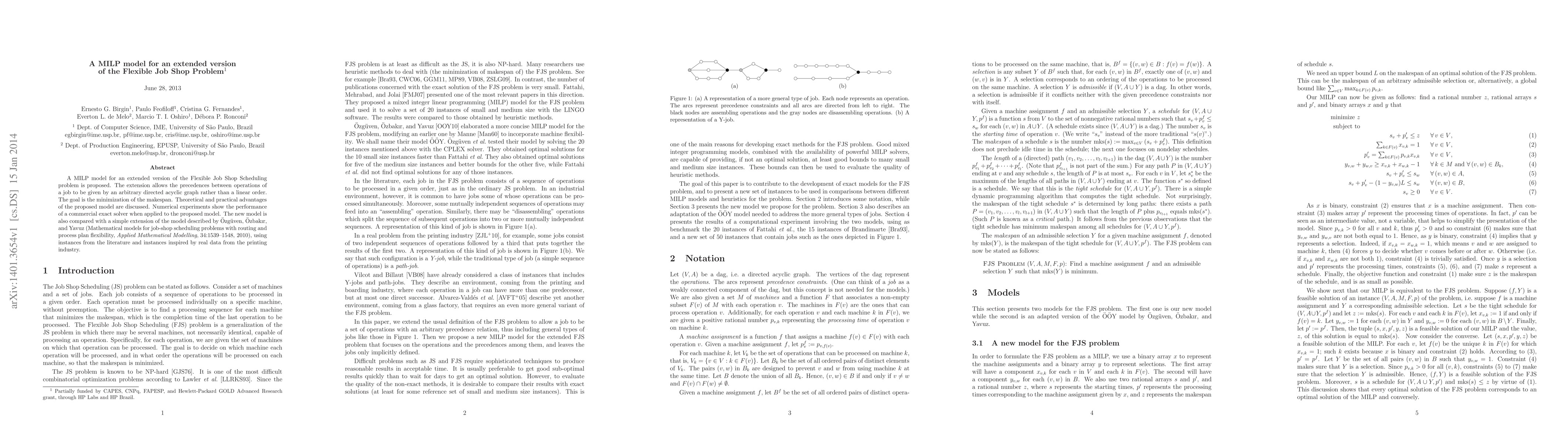 A MILP model for an extended version of the Flexible Job Shop Scheduling problem is proposed. The extension allows the precedences between operations of a job to be given by an arbitrary directed acyclic graph rather than a linear order. The goal is the minimization of the makespan. Theoretical and practical advantages of the proposed model are discussed. Numerical experiments show the performance of a commercial exact solver when applied to the proposed model. The new model is also compared with a simple extension of the model described by \"Ozg\"uven, \"Ozbakir, and Yavuz (Mathematical models for job-shop scheduling problems with routing and process plan flexibility, Applied Mathematical Modelling, 34:1539--1548, 2010), using instances from the literature and instances inspired by real data from the printing industry.