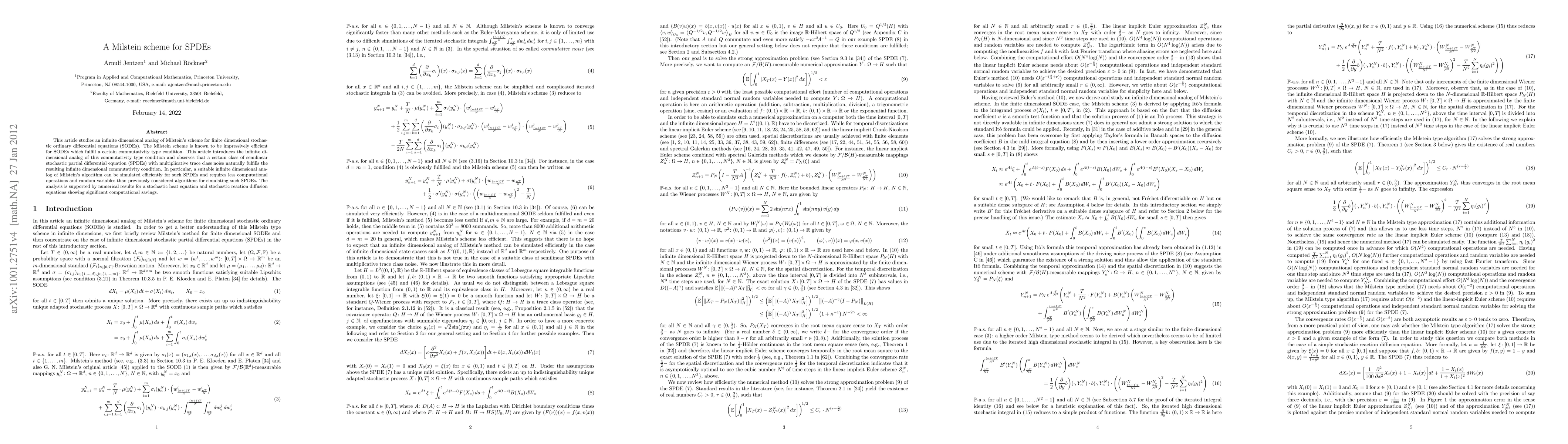 This article studies an infinite dimensional analog of Milstein's scheme for finite dimensional stochastic ordinary differential equations (SODEs). The Milstein scheme is known to be impressively efficient for SODEs which fulfill a certain commutativity type condition. This article introduces the infinite dimensional analog of this commutativity type condition and observes that a certain class of semilinear stochastic partial differential equation (SPDEs) with multiplicative trace class noise naturally fulfills the resulting infinite dimensional commutativity condition. In particular, a suitable infinite dimensional analog of Milstein's algorithm can be simulated efficiently for such SPDEs and requires less computational operations and random variables than previously considered algorithms for simulating such SPDEs. The analysis is supported by numerical results for a stochastic heat equation and stochastic reaction diffusion equations showing signifficant computational savings.