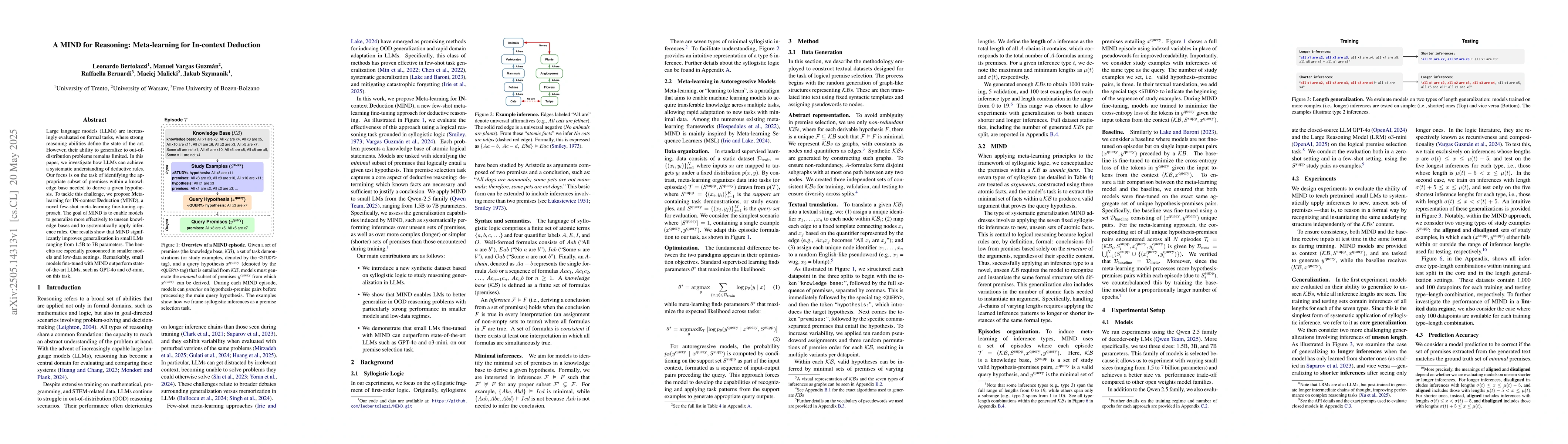 This research paper introduces Meta-learning for In-context Deduction (MIND), a few-shot meta-learning approach that enables large language models to generalize better on out-of-distribution problems, improving performance even in small models with limited data.