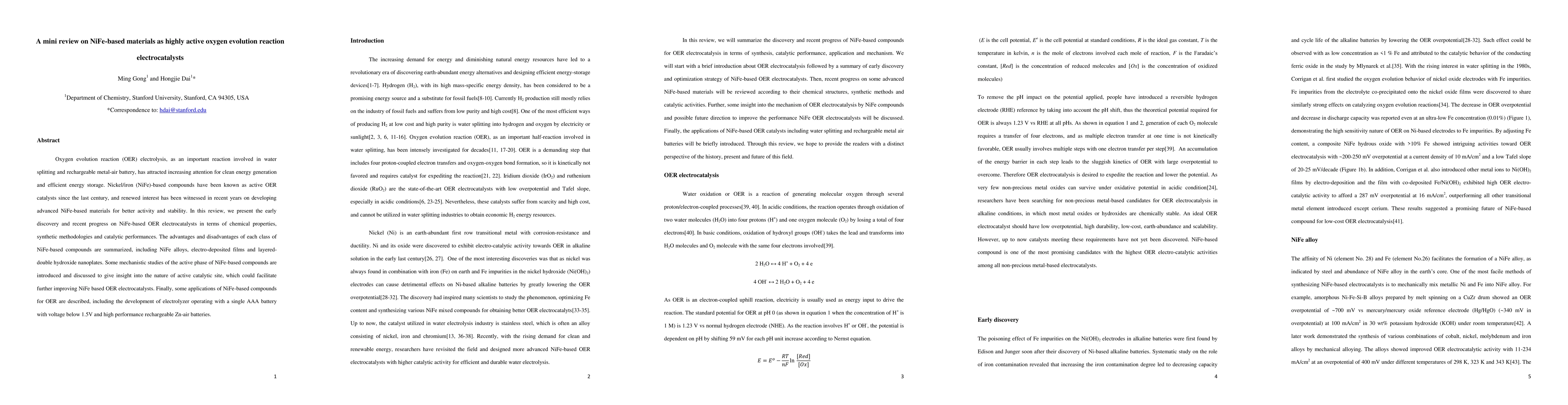 This review covers the historical and recent advancements in NiFe-based materials as oxygen evolution reaction (OER) electrocatalysts, highlighting their chemical properties, synthetic methods, and catalytic performance. It discusses the advantages and limitations of various NiFe compounds and provides insights into their active catalytic sites to guide further improvements.