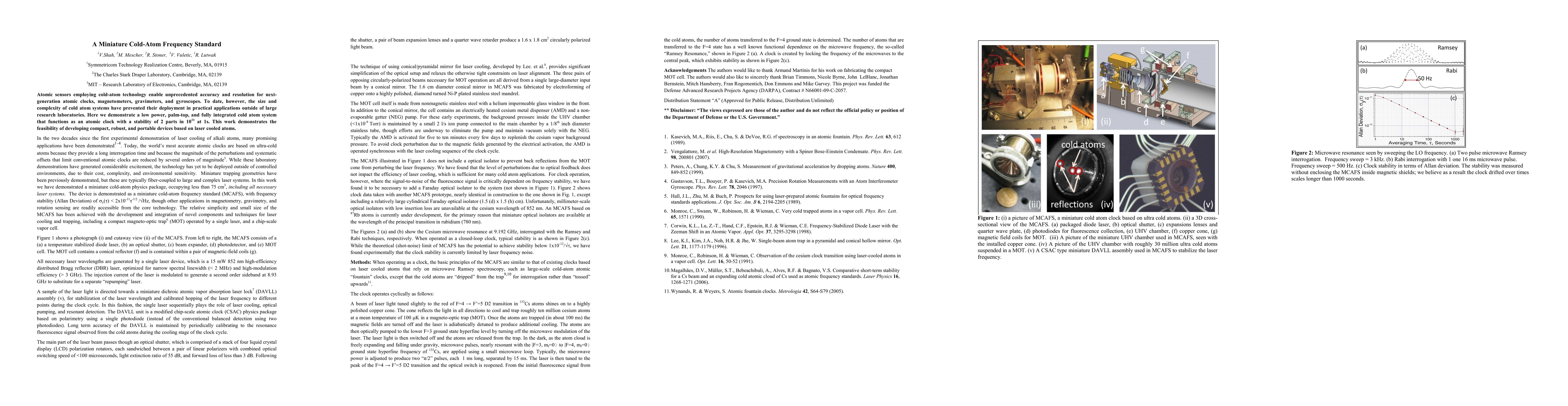 This paper presents a compact, low-power, palm-sized cold atom system that functions as an atomic clock, achieving stability of 2 parts in 10^11 at 1s, showcasing the potential for portable, practical applications of cold atom technology.