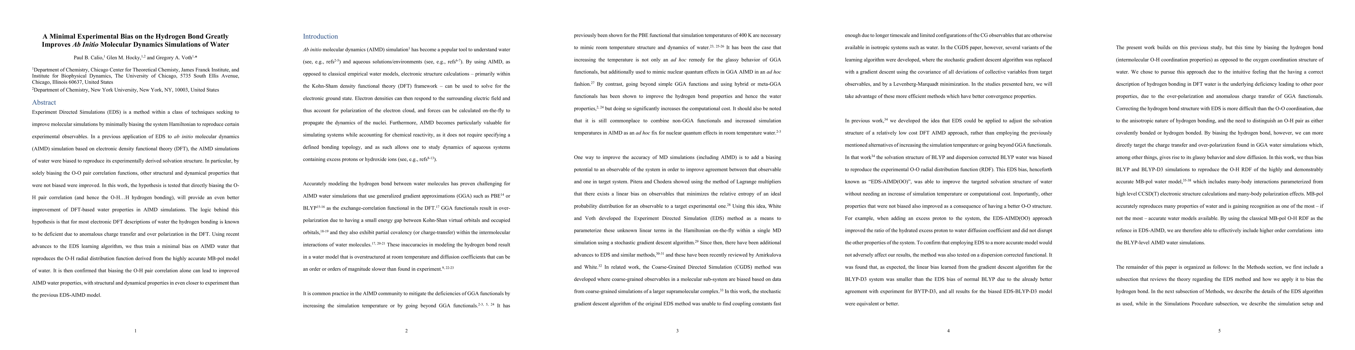 Experiment Directed Simulations (EDS) is a method within a class of techniques seeking to improve molecular simulations by minimally biasing the system Hamiltonian to reproduce certain experimental observables. In a previous application of EDS to ab initio molecular dynamics (AIMD) simulation-based on electronic density functional theory (DFT), the AIMD simulations of water were biased to reproduce its experimentally derived solvation structure. In particular, by solely biasing the O-O pair correlation functions, other structural and dynamical properties that were not biased were improved. In this work, the hypothesis is tested that directly biasing the OH pair correlation, will provide an even better improvement of DFT-based water properties in AIMD simulations. The logic behind this hypothesis is that for most electronic DFT descriptions of water the hydrogen bonding is known to be deficient due to anomalous charge transfer and over polarization in the DFT. Using recent advances to the EDS learning algorithm, we thus train a minimal bias on AIMD water that reproduces the O-H radial distribution function derived from the highly accurate MB-pol model of water. It is then confirmed that biasing the O-H pair correlation alone can lead to improved AIMD water properties, with structural and dynamical properties in even closer to experiment than the previous EDS-AIMD model.