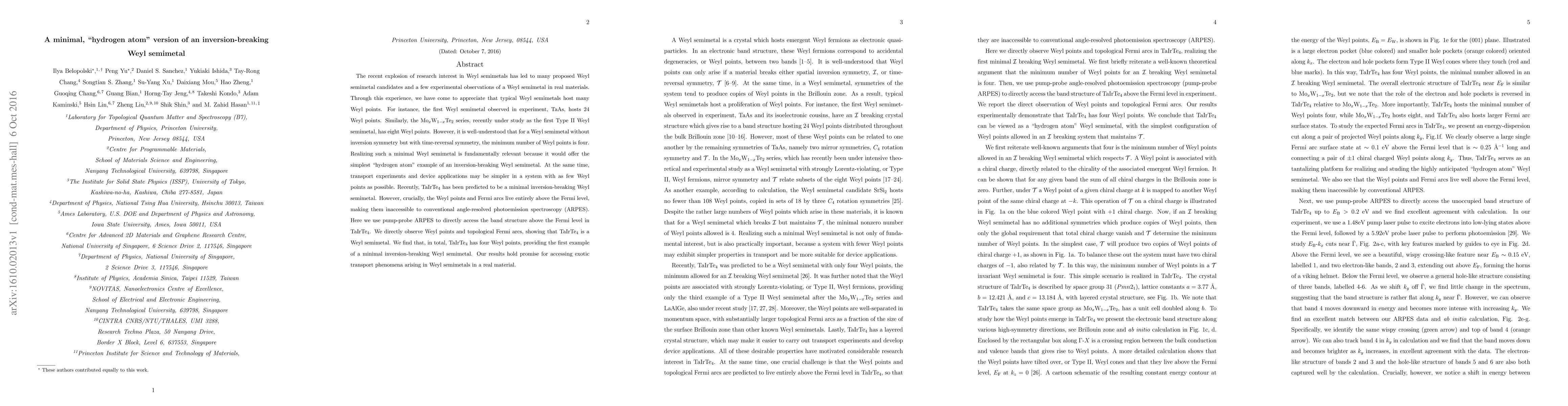 This research confirms that TaIrTe$_4$ is a minimal, inversion-breaking Weyl semimetal with exactly four Weyl points, making it the simplest "hydrogen atom" example of such materials. The study utilizes pump-probe ARPES to observe the Weyl points and topological Fermi arcs above the Fermi level, validating TaIrTe$_4$'s Weyl semimetal nature and promising simpler transport experiments.