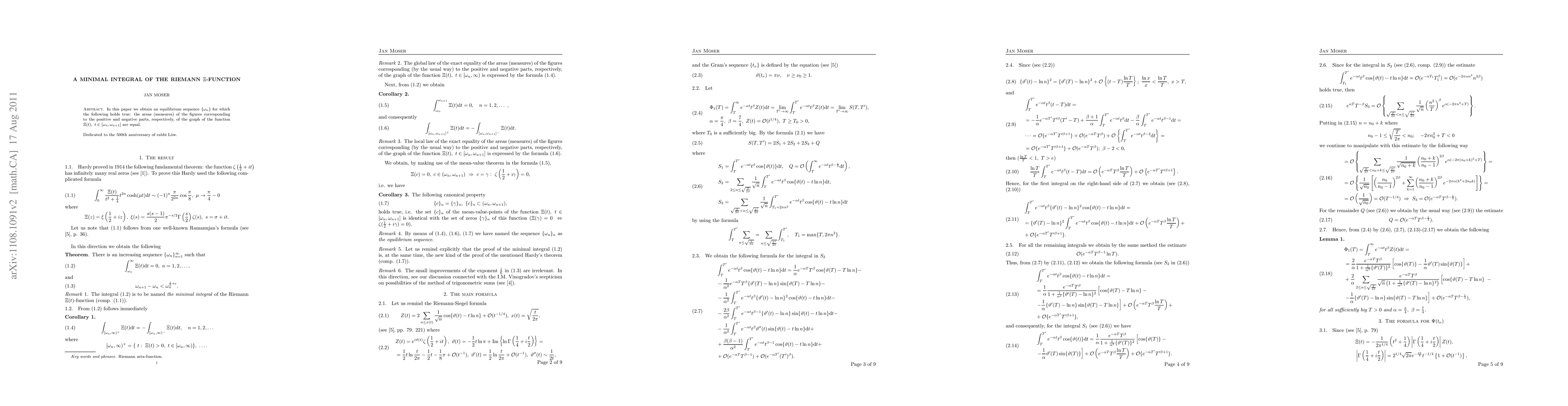 In this paper we obtain an equilibrium sequence $\{\omega_n\}$ for which the following holds true: the areas (measures) of the figures corresponding to the positive and negative parts, respectively, of the graph of the function $\Xi(t),\ t\in[\omega_n,\omega_{n+1}]$ are equal. Dedicated to the 500th anniversary of rabbi L\"ow.