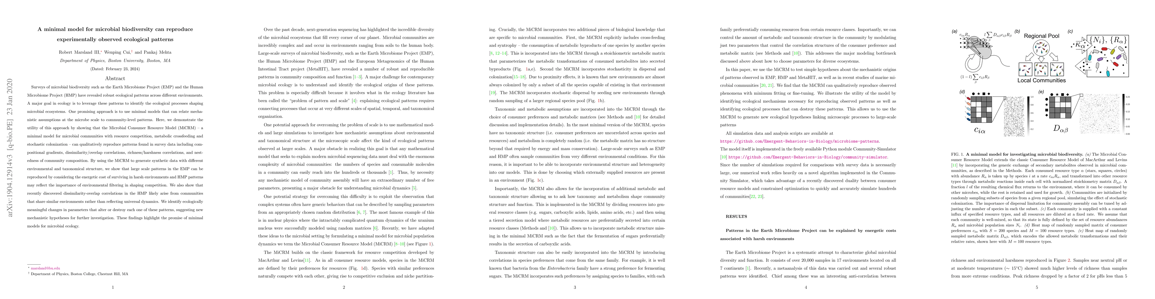 This paper demonstrates that the Microbial Consumer Resource Model (MiCRM) can reproduce key ecological patterns observed in large microbial biodiversity surveys, suggesting that minimal models hold promise for understanding microbial ecosystems. The MiCRM's ability to replicate compositional gradients and other patterns highlights the potential of mechanistic models to elucidate the ecological processes shaping microbial communities.