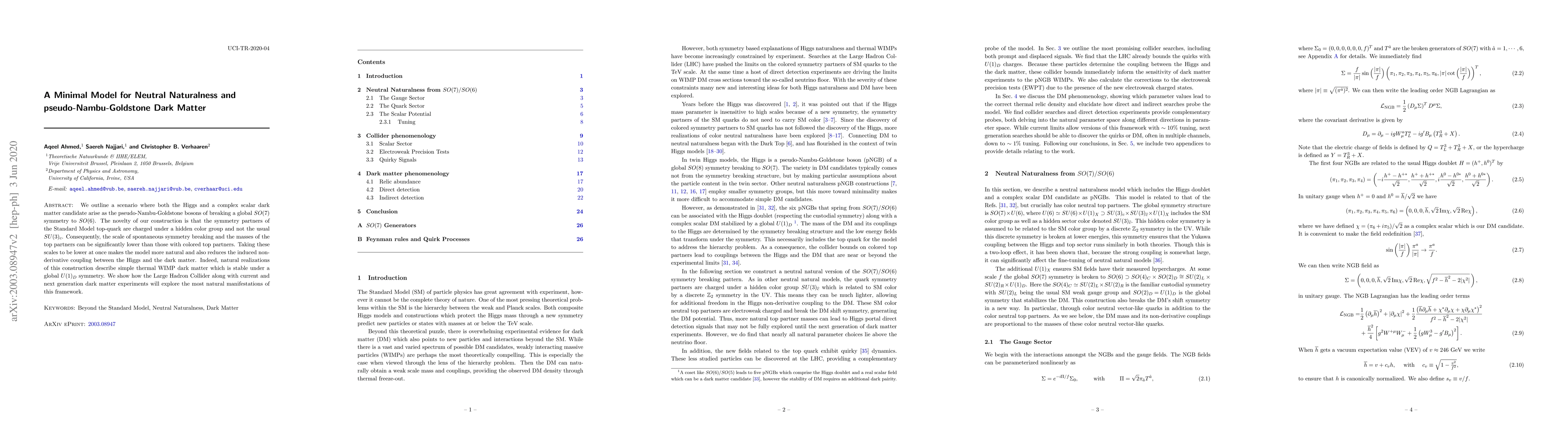 We outline a scenario where both the Higgs and a complex scalar dark matter candidate arise as the pseudo-Nambu-Goldstone bosons of breaking a global $SO(7)$ symmetry to $SO(6)$. The novelty of our construction is that the symmetry partners of the Standard Model top-quark are charged under a hidden color group and not the usual $SU(3)_c$. Consequently, the scale of spontaneous symmetry breaking and the masses of the top partners can be significantly lower than those with colored top partners. Taking these scales to be lower at once makes the model more natural and also reduces the induced non-derivative coupling between the Higgs and the dark matter. Indeed, natural realizations of this construction describe simple thermal WIMP dark matter which is stable under a global $U(1)_D$ symmetry. We show how the Large Hadron Collider along with current and next generation dark matter experiments will explore the most natural manifestations of this framework.