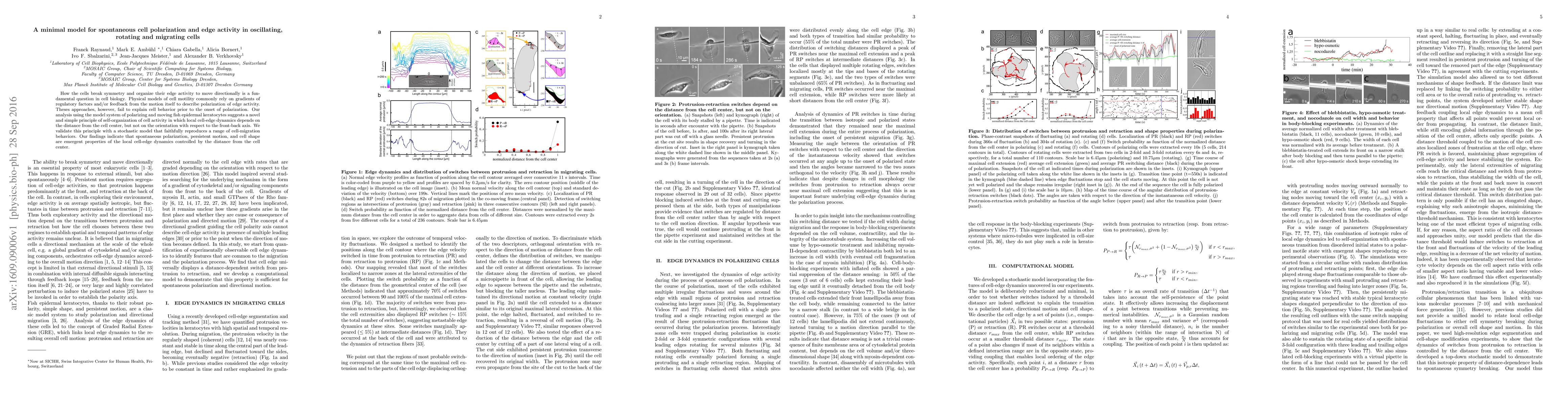 How the cells break symmetry and organize their edge activity to move directionally is a fun- damental question in cell biology. Physical models of cell motility commonly rely on gradients of regulatory factors and/or feedback from the motion itself to describe polarization of edge activity. Theses approaches, however, fail to explain cell behavior prior to the onset of polarization. Our analysis using the model system of polarizing and moving fish epidermal keratocytes suggests a novel and simple principle of self-organization of cell activity in which local cell-edge dynamics depends on the distance from the cell center, but not on the orientation with respect to the front-back axis. We validate this principle with a stochastic model that faithfully reproduces a range of cell-migration behaviors. Our findings indicate that spontaneous polarization, persistent motion, and cell shape are emergent properties of the local cell-edge dynamics controlled by the distance from the cell center.