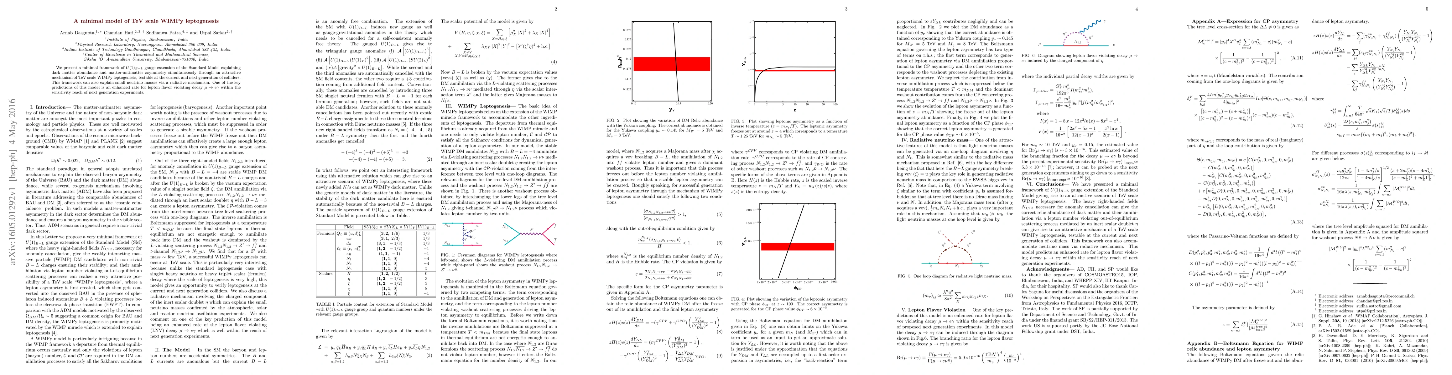 The paper introduces a minimal U(1)B−L extension of the Standard Model that successfully incorporates TeV scale WIMPy leptogenesis, radiative neutrino masses, and enhanced lepton flavor violation, all within a single framework.