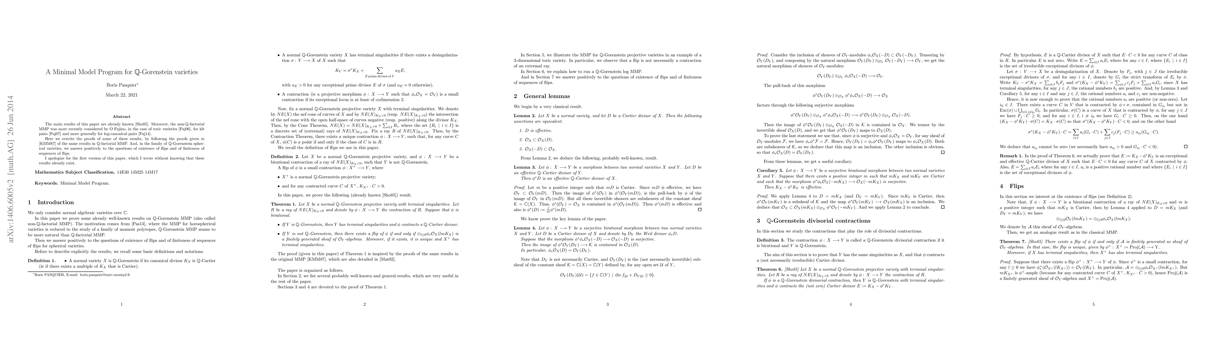 This paper reiterates and expands upon existing results in the minimal model program (MMP) for Q-Gorenstein varieties, originally proven by Shokurov and later by Fujino. It follows the proofs by Kawamata, Matsuda, and Matsuki, focusing on Q-factorial MMP. The paper confirms the existence of flips and finiteness of flip sequences specifically for Q-Gorenstein spherical varieties, apologizing for not being aware of the pre-existing results in its initial draft.
