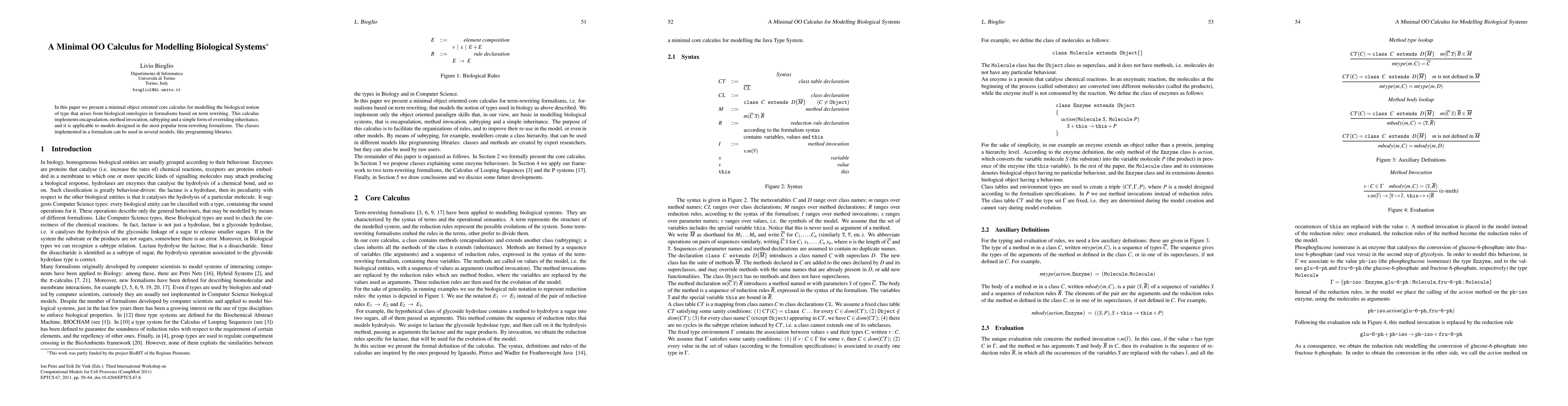 Researchers developed a minimal object-oriented calculus to model biological systems, introducing key concepts like encapsulation and overriding inheritance in term-rewriting formalisms.