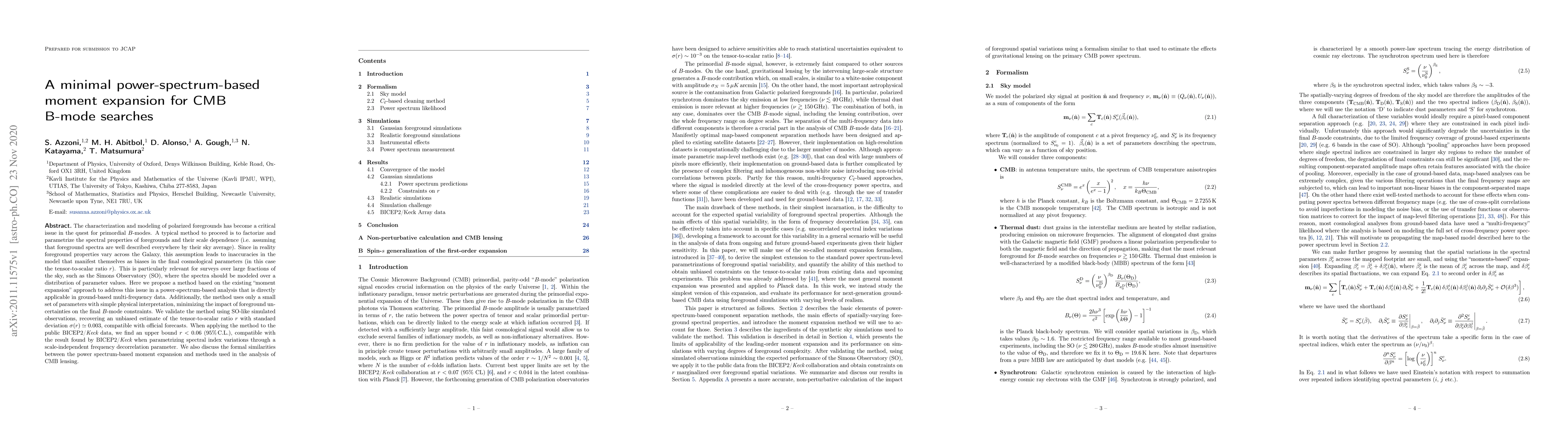The characterization and modeling of polarized foregrounds has become a critical issue in the quest for primordial $B$-modes. A typical method to proceed is to factorize and parametrize the spectral properties of foregrounds and their scale dependence (i.e. assuming that foreground spectra are well described everywhere by their sky average). Since in reality foreground properties vary across the Galaxy, this assumption leads to inaccuracies in the model that manifest themselves as biases in the final cosmological parameters (in this case the tensor-to-scalar ratio $r$). This is particularly relevant for surveys over large fractions of the sky, such as the Simons Observatory (SO), where the spectra should be modeled over a distribution of parameter values. Here we propose a method based on the existing ``moment expansion'' approach to address this issue in a power-spectrum-based analysis that is directly applicable in ground-based multi-frequency data. Additionally, the method uses only a small set of parameters with simple physical interpretation, minimizing the impact of foreground uncertainties on the final $B$-mode constraints. We validate the method using SO-like simulated observations, recovering an unbiased estimate of the tensor-to-scalar ratio $r$ with standard deviation $\sigma(r)\simeq0.003$, compatible with official forecasts. When applying the method to the public BICEP2/Keck data, we find an upper bound $r<0.06$ ($95\%\,{\rm C.L.}$), compatible with the result found by BICEP2/Keck when parametrizing spectral index variations through a scale-independent frequency decorrelation parameter. We also discuss the formal similarities between the power spectrum-based moment expansion and methods used in the analysis of CMB lensing.