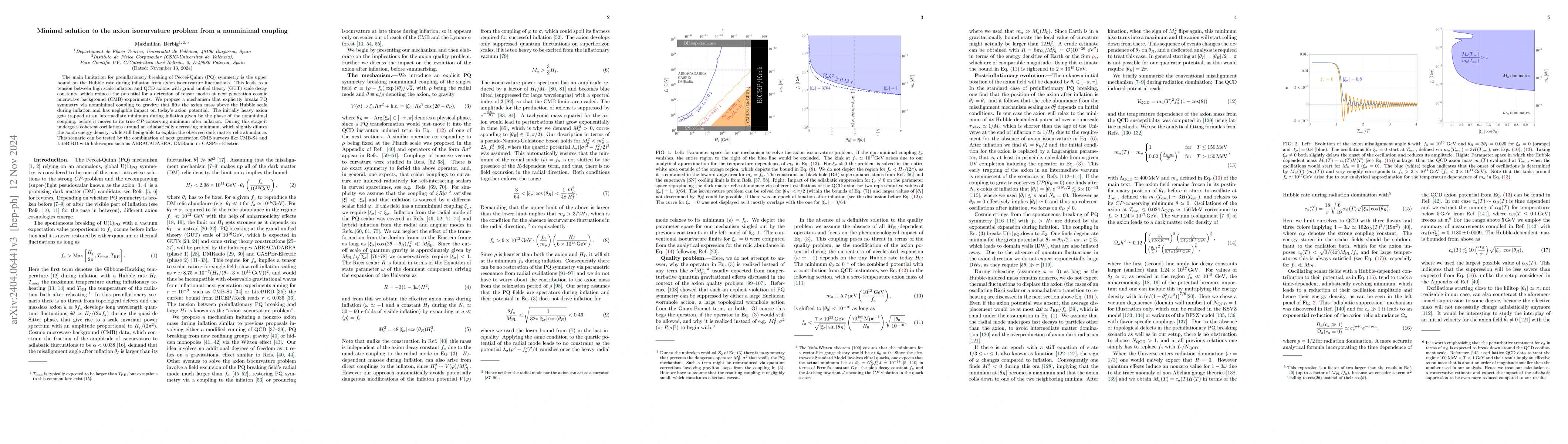 This paper proposes a mechanism to resolve the axion isocurvature problem by breaking Peccei-Quinn symmetry through non-minimal gravitational coupling, allowing the axion mass to exceed the Hubble scale during inflation without affecting its present-day potential. This scenario can be tested by future CMB experiments and axion haloscopes.