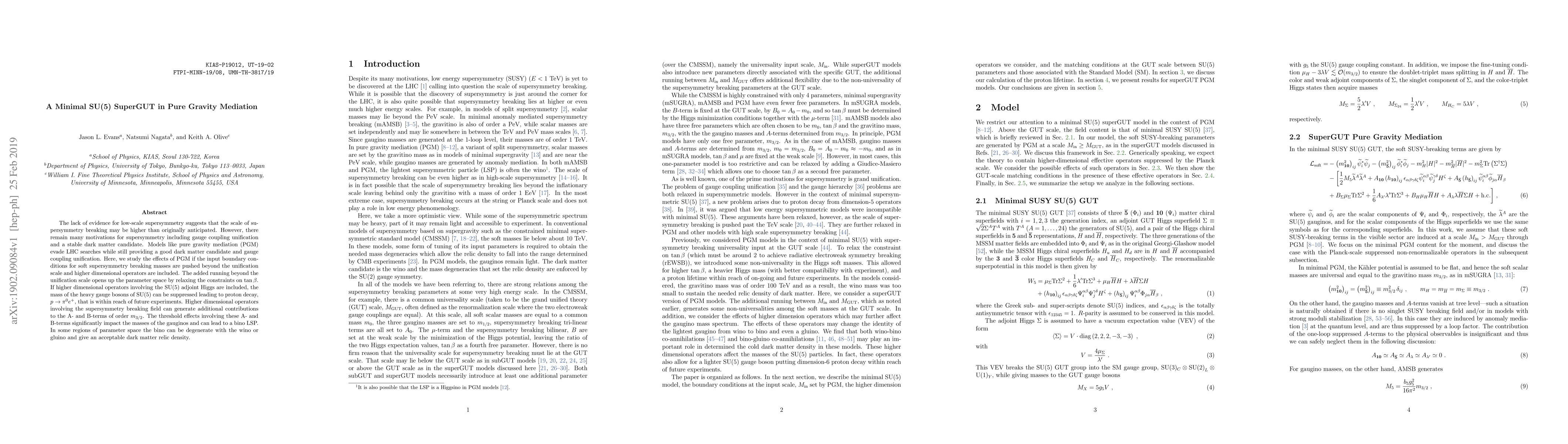 This paper explores a minimal SU(5) SuperGUT under pure gravity mediation, investigating how higher-dimensional operators affect the model's phenomenology. It finds that such operators can suppress heavy gauge boson masses, potentially enabling observable proton decay, while also influencing gaugino masses and dark matter candidates.