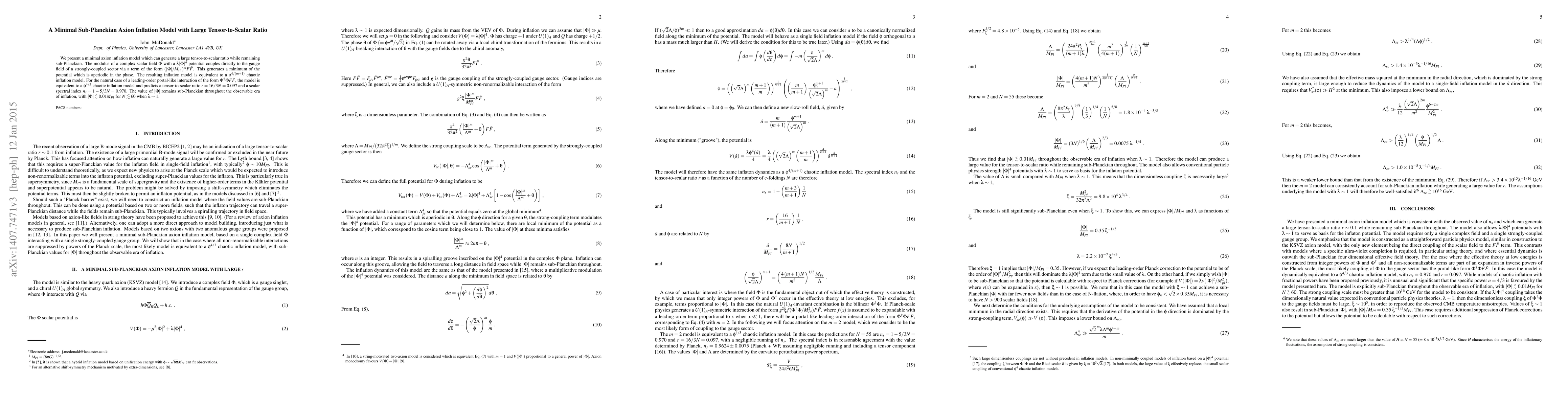 This paper proposes a minimal axion inflation model generating a large tensor-to-scalar ratio while keeping the field sub-Planckian. The model utilizes a complex scalar field $\Phi$ with a $\lambda |\Phi|^4$ potential, coupling it to gauge fields in a strongly-coupled sector, leading to a $\phi^{4/3}$ chaotic inflation model and predicting a tensor-to-scalar ratio of $r = 0.097$.