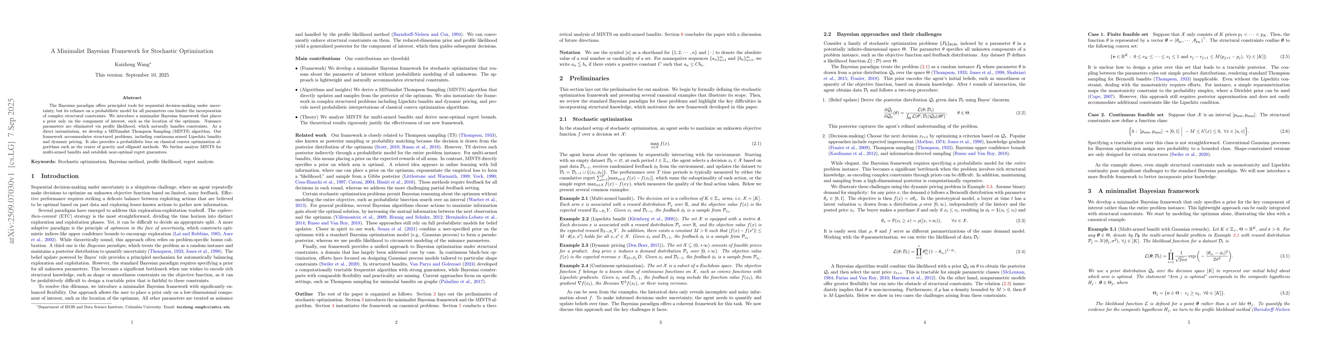 The Bayesian paradigm offers principled tools for sequential decision-making under uncertainty, but its reliance on a probabilistic model for all parameters can hinder the incorporation of complex structural constraints. We introduce a minimalist Bayesian framework that places a prior only on the component of interest, such as the location of the optimum. Nuisance parameters are eliminated via profile likelihood, which naturally handles constraints. As a direct instantiation, we develop a MINimalist Thompson Sampling (MINTS) algorithm. Our framework accommodates structured problems, including continuum-armed Lipschitz bandits and dynamic pricing. It also provides a probabilistic lens on classical convex optimization algorithms such as the center of gravity and ellipsoid methods. We further analyze MINTS for multi-armed bandits and establish near-optimal regret guarantees.