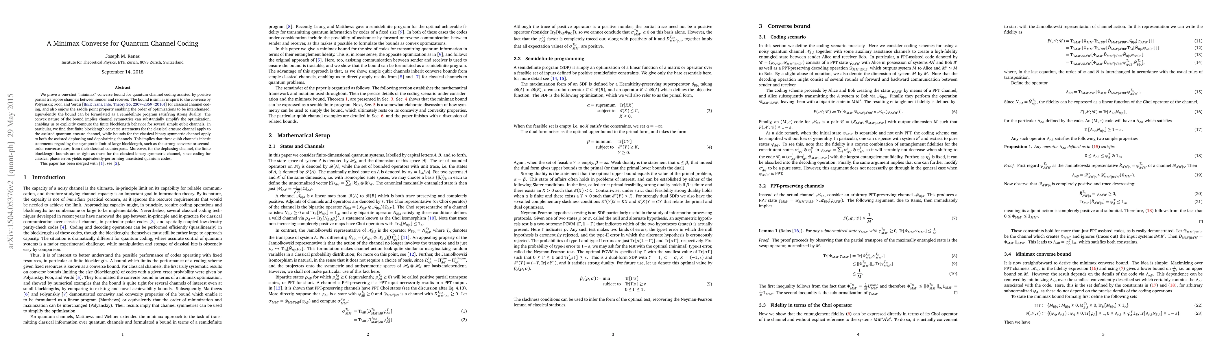 This paper establishes a minimax converse bound for quantum channel coding using positive partial transpose channels, analogous to classical channel coding converse bounds. It demonstrates the bound's applicability to various qubit channels, showing that they inherit asymptotic limits from classical channels, and finds tight finite blocklength bounds for the dephasing channel.