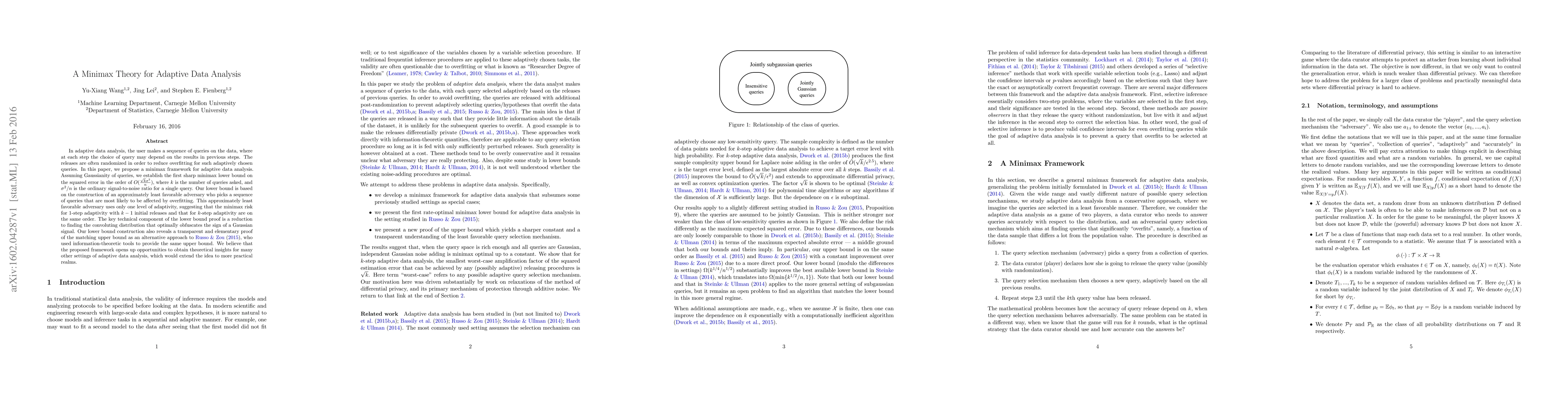 Researchers propose a minimax framework for adaptive data analysis, establishing a lower bound of O(sqrt(k)*sigma^2/n) on the squared error for k queries, where k is the number of queries asked.