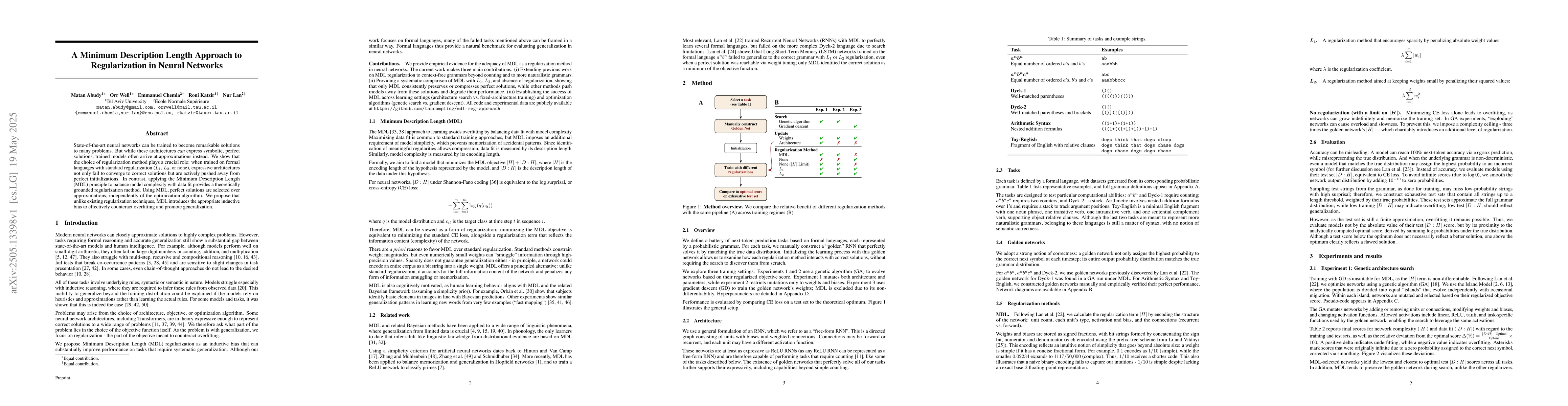 The Minimum Description Length principle as a novel regularization method for neural networks, ensuring a balance between model complexity and data fit.