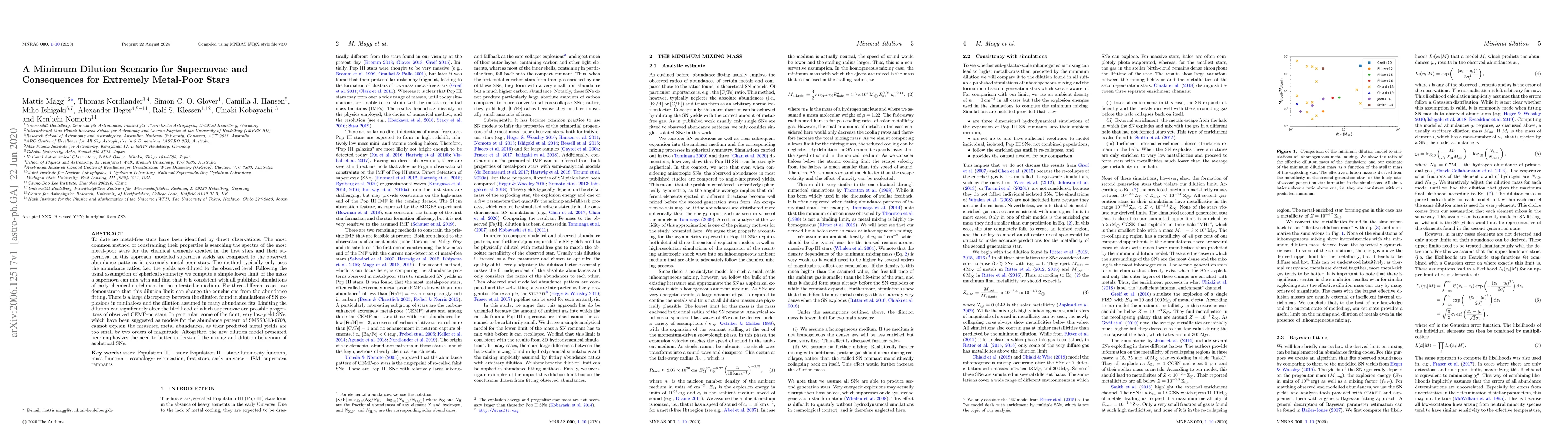 To date no metal-free stars have been identified by direct observations. The most common method of constraining their properties is searching the spectra of the most metal-poor stars for the chemical elements created in the first stars and their supernova. In this approach, modelled supernova yields are compared to the observed abundance patterns in extremely metal-poor stars. The method typically only uses the abundance ratios, i.e., the yields are diluted to the observed level. Following the usual assumption of spherical symmetry we compute a simple lower limit of the mass a supernova can mix with and find that it is consistent with all published simulations of early chemical enrichment in the interstellar medium. For three different cases, we demonstrate that this dilution limit can change the conclusions from the abundance fitting. There is a large discrepancy between the dilution found in simulations of SN explosions in minihaloes and the dilution assumed in many abundance fits. Limiting the dilution can significantly alter the likelihood of which supernovae are possible progenitors of observed CEMP-no stars. In particular, some of the faint, very low-yield SNe, which have been suggested as models for the abundance pattern of SMSS0313-6708, cannot explain the measured metal abundances, as their predicted metal yields are too small by two orders of magnitude. Altogether, the new dilution model presented here emphasizes the need to better understand the mixing and dilution behaviour of aspherical SNe.