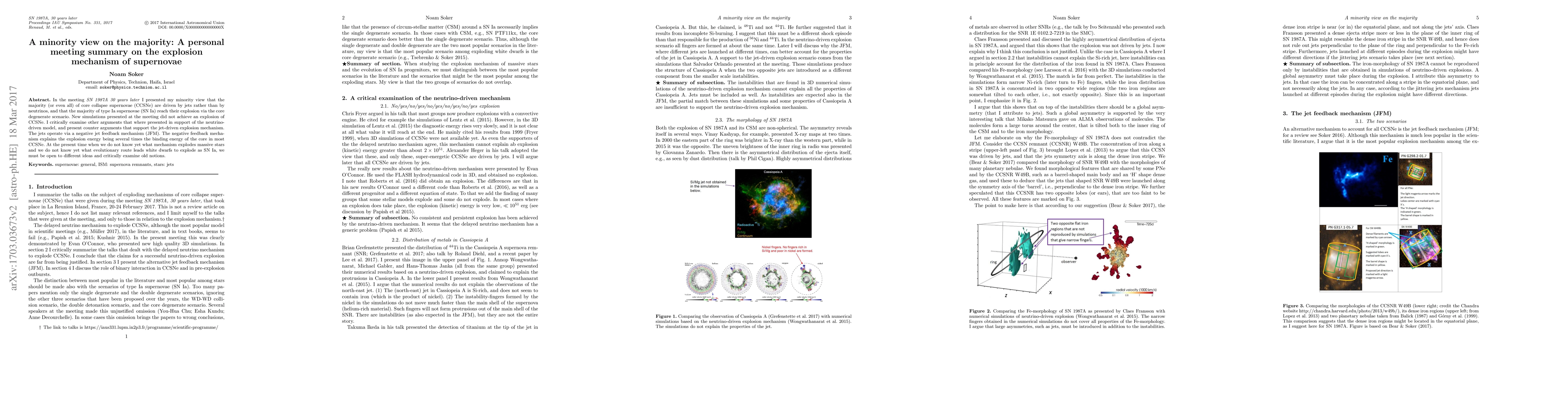 In the meeting SN 1987A 30 years later, I presented my minority view that the majority (or even all) of core collapse supernovae (CCSNe) are driven by jets rather than by neutrinos, and that the majority of type Ia supernovae (SN Ia) reach their explosion via the core degenerate scenario. New simulations presented at the meeting did not achieve an explosion of CCSNe. I critically examine other arguments that where presented in support of the neutrino-driven model, and present counter arguments that support the jet-driven explosion mechanism. The jets operate via a negative jet feedback mechanism (JFM). The negative feedback mechanism explains the explosion energy being several times the binding energy of the core in most CCSNe. At the present time when we do not know yet what mechanism explodes massive stars and we do not know yet what evolutionary route leads white dwarfs to explode as SN Ia, we must be open to different ideas and critically examine old notions.