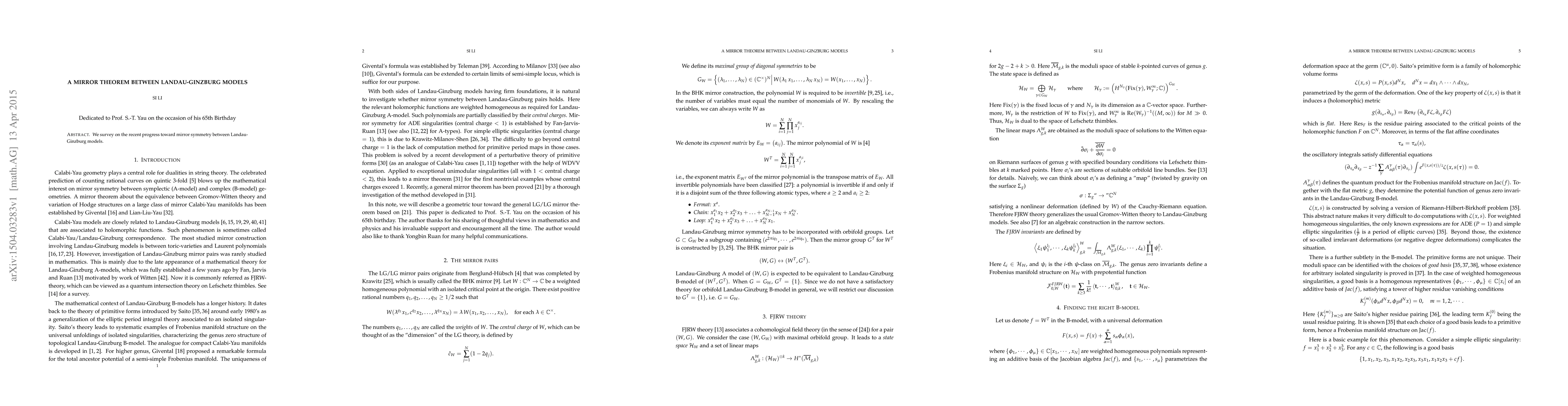 Summary: This paper reviews advancements in understanding mirror symmetry for Landau-Ginzburg models, highlighting recent developments and theoretical progress in the field.