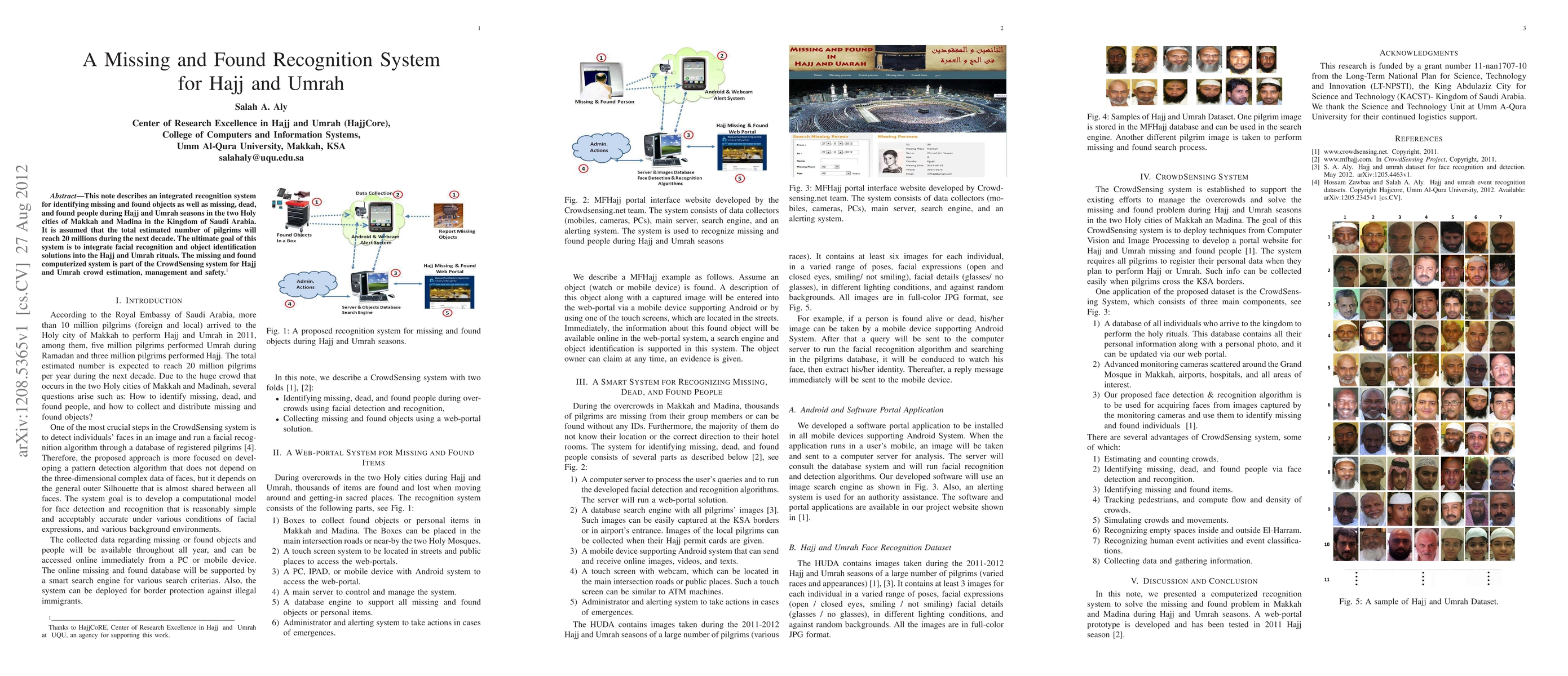 A system is proposed to integrate facial recognition and object identification for missing and found objects and people during Hajj and Umrah in Saudi Arabia's Holy cities, aiming to enhance crowd estimation, management, and safety.