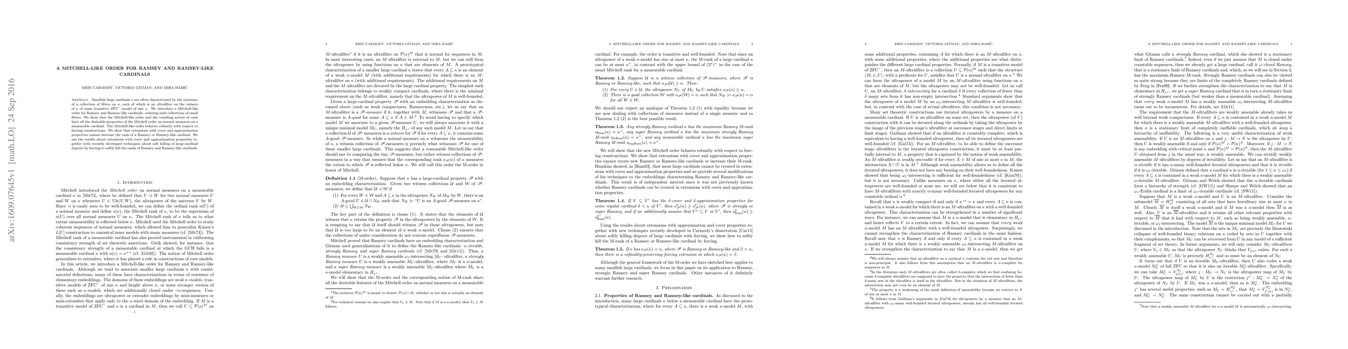 Smallish large cardinals $\kappa$ are often characterized by the existence of a collection of filters on $\kappa$, each of which is an ultrafilter on the subsets of $\kappa$ of some transitive $\mathrm{ZFC}^-$-model of size $ \kappa$. We introduce a Mitchell-like order for Ramsey and Ramsey-like cardinals, ordering such collections of small filters. We show that the Mitchell-like order and the resulting notion of rank have all the desirable properties of the Mitchell order on normal measures on a measurable cardinal. The Mitchell-like order behaves robustly with respect to forcing constructions. We show that extensions with cover and approximation properties cannot increase the rank of a Ramsey or Ramsey-like cardinal. We use the results about extensions with cover and approximation properties together with recently developed techniques about soft killing of large-cardinal degrees by forcing to softly kill the ranks of Ramsey and Ramsey-like cardinals.