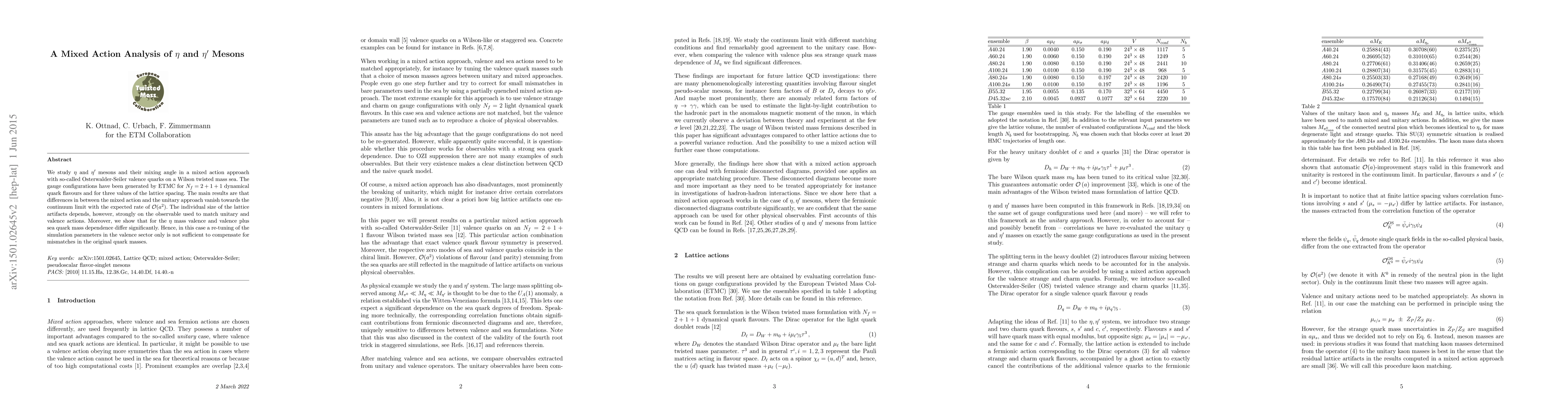 This paper studies $ heta$ mesons using a mixed action approach, finding that differences between methods vanish at the continuum limit but individual lattice artifacts depend on observable used. The study highlights the importance of re-tuning simulation parameters for accurate results.