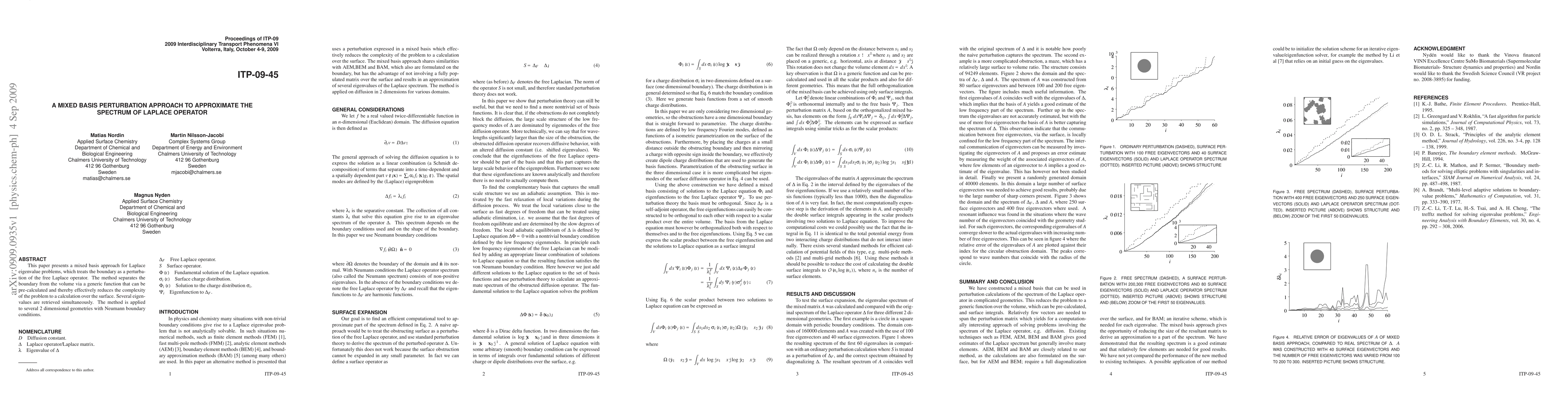 This paper presents a mixed basis approach for Laplace eigenvalue problems, which treats the boundary as a perturbation of the free Laplace operator. The method separates the boundary from the volume via a generic function that can be pre-calculated and thereby effectively reduces the complexity of the problem to a calculation over the surface. Several eigenvalues are retrieved simultaneously. The method is applied to several 2 dimensional geometries with Neumann boundary conditions.