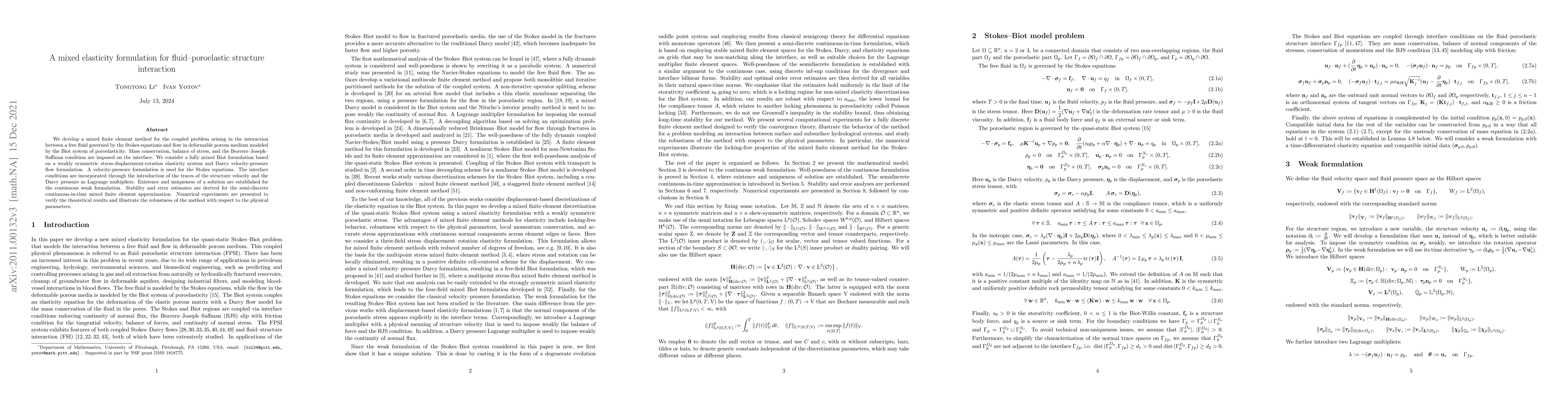 Researchers developed a new method to simulate interactions between fluids and deformable porous structures, ensuring mass conservation and balance of stress at the interface. The approach provides stability and error estimates, offering insights into robust simulation of fluid-poroelastic structure interaction.