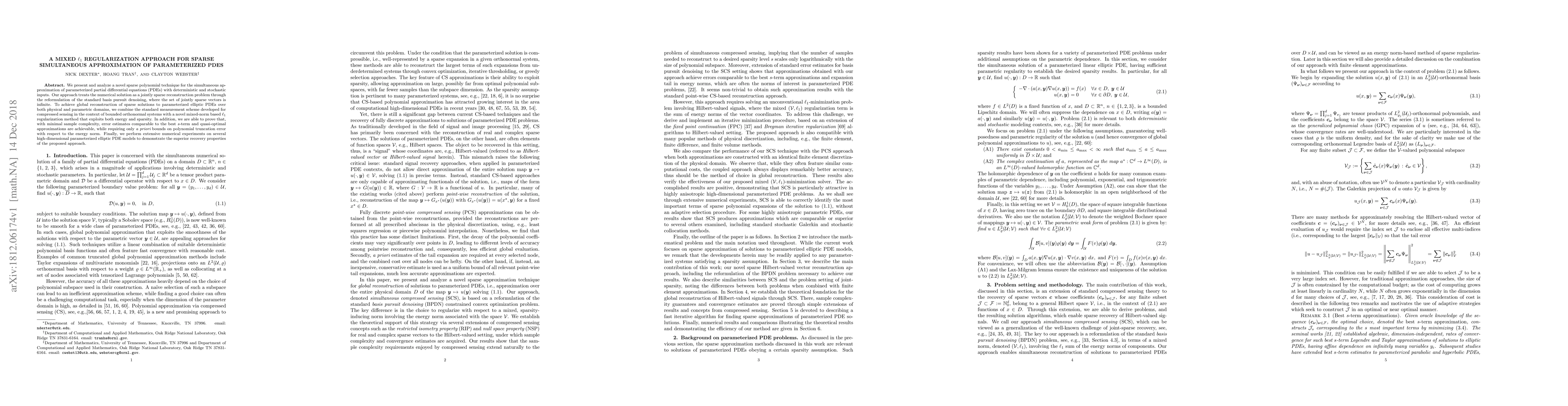 This paper introduces a mixed $\ell_1$ regularization method for sparse simultaneous approximation of parameterized PDEs, combining compressed sensing techniques with a novel mixed-norm approach to achieve global reconstruction with minimal sample complexity and comparable error estimates. Numerical experiments validate the superior recovery properties of the proposed method.